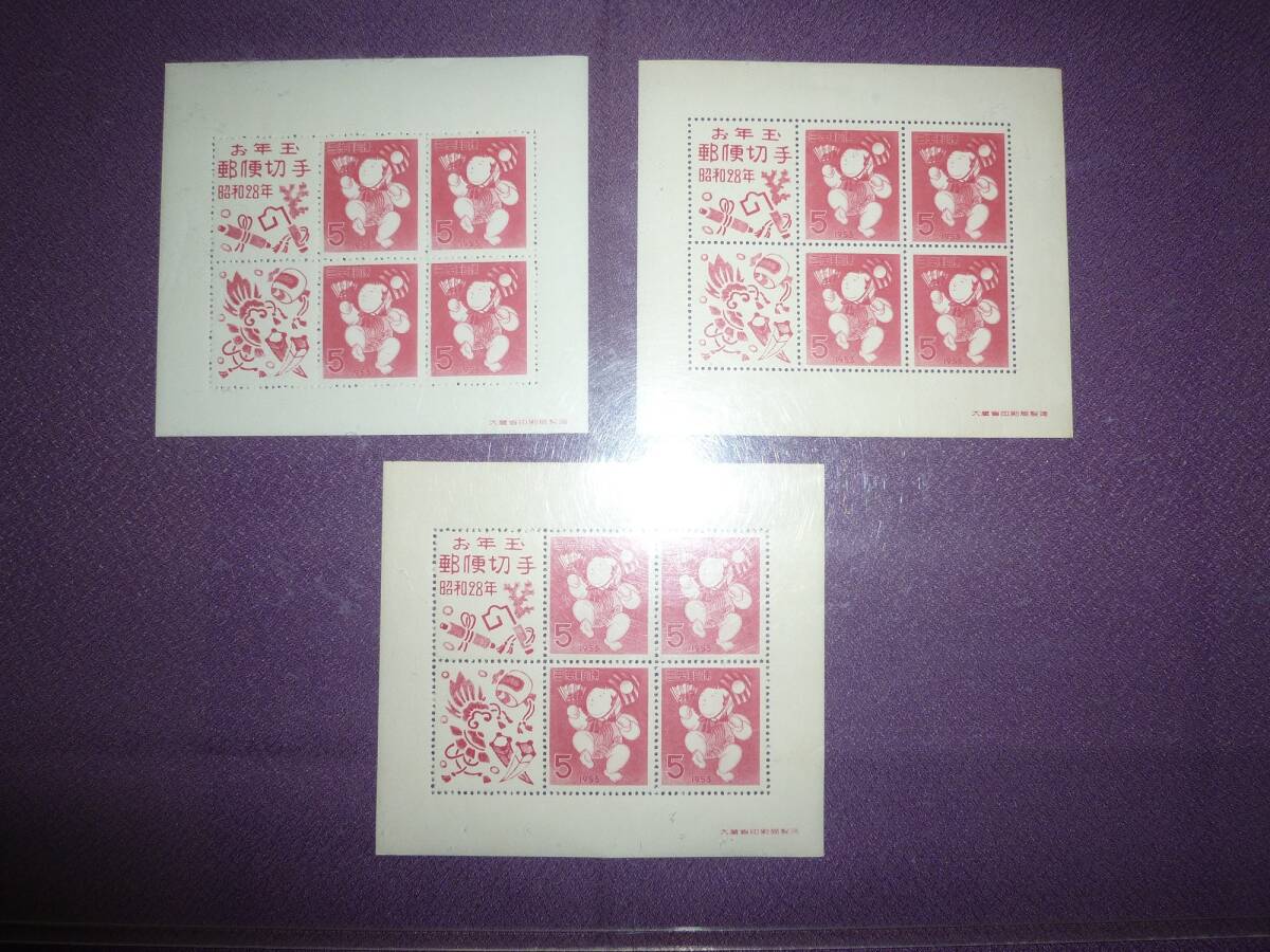 未使用 年賀 昭和28年 三番叟人形 小型シート 他 5枚