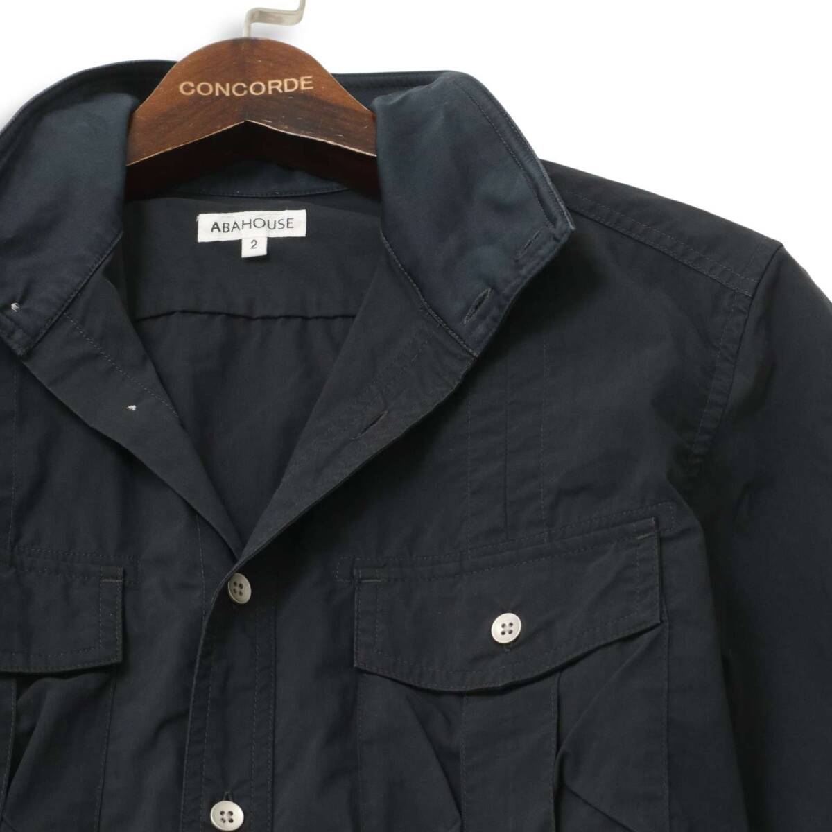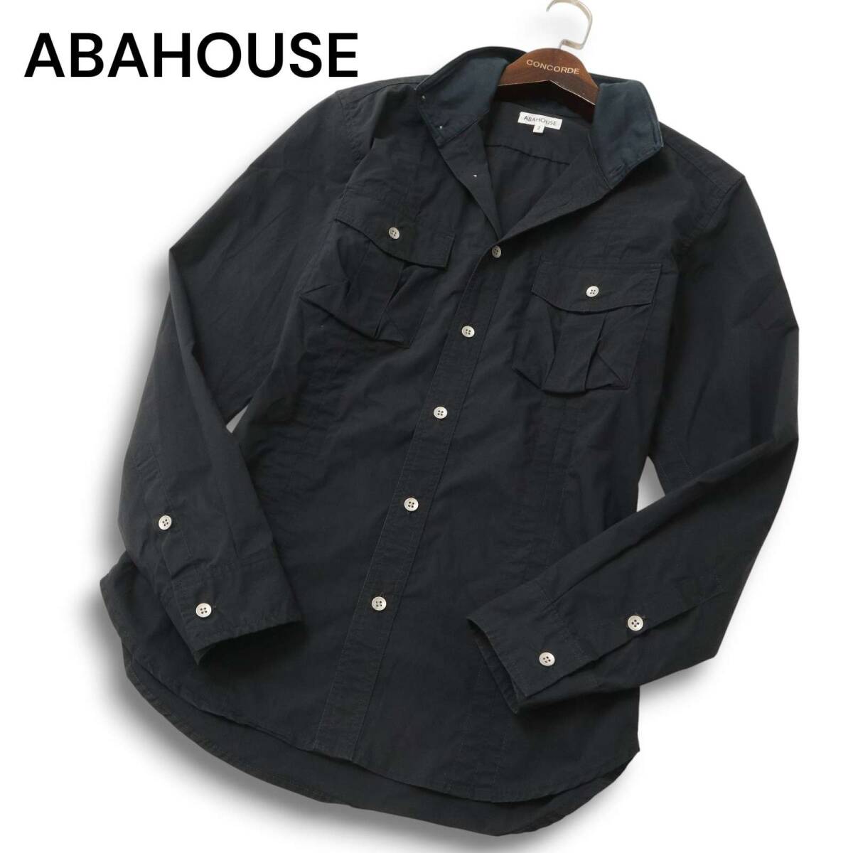 ABAHOUSE アバハウス 通年 襟ワイヤー★ 長袖 スタンドカラー スリム ワーク シャツ Sz.2 メンズ 黒