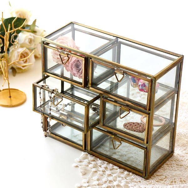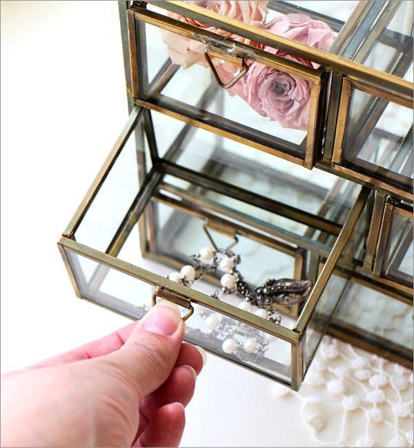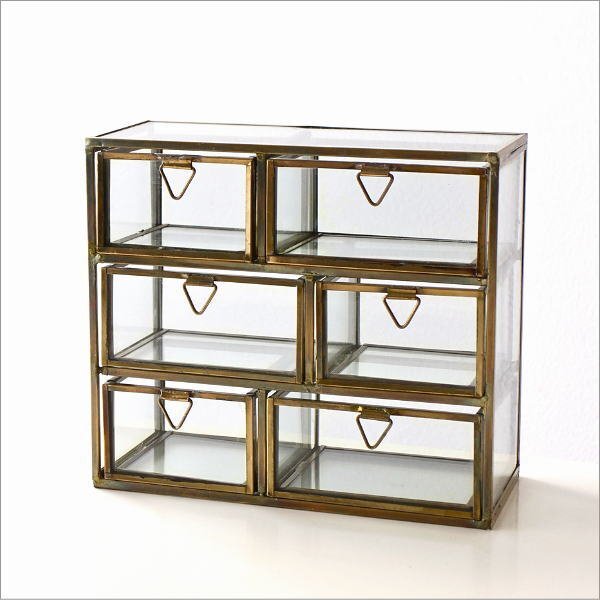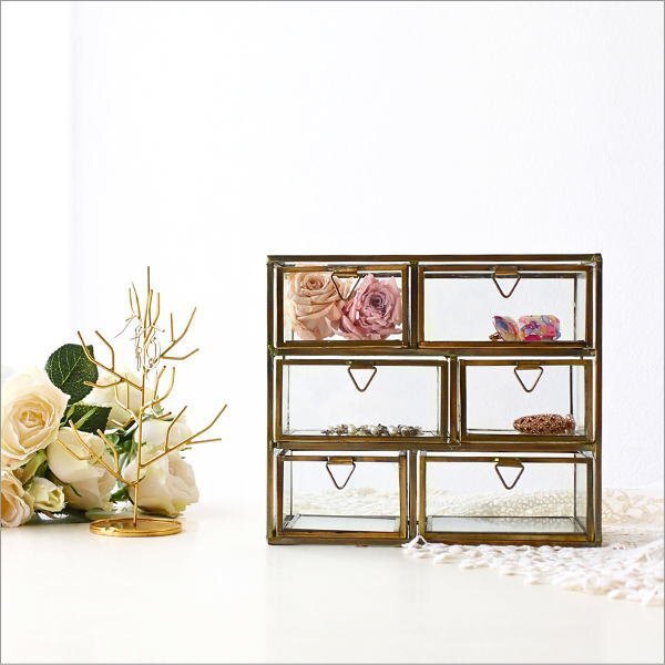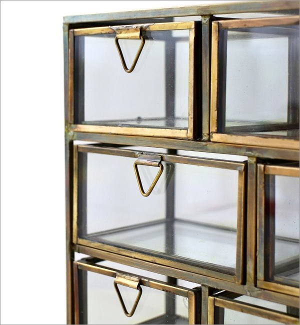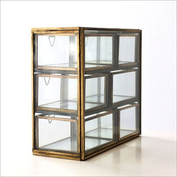 | ガラスの透明感と 真鍮色のアイアンフレームで 凝った作りの 2種6杯の引き出しが付いた 手作り感あふれる、小さなチェスト 厚みのあるガラスを使用しており ずっしりと重みがあり 重厚感とこだわりのあるミニチェストです 商品名 : アイアンとガラスのミニチェスト 6ドロアー 商品番号 : tom8870 全体のサイズ(cm) : 幅20×奥行8×高さ17.5 引き出しのサイズ : 大)幅9.5×奥行7×深さ4.5 小)幅7×奥行7×深さ4.5 材質 : ガラス アイアン 重量 : 2.02kg 生産国 : インド ※引き出しにストッパーはついていません ※手作り品につき、わずかなガタつきや小さなガラスの欠け、小傷等はご容赦ください ※アイアンに真鍮風のペイントを施したアンティーク調デザインです ※ディスプレイによる色の違いはご了承下さい |