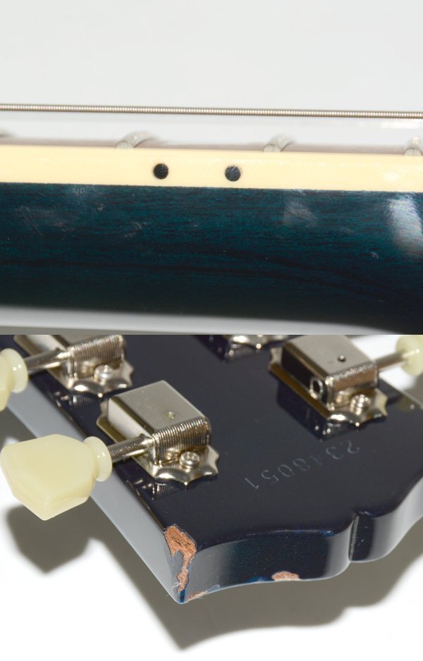 ・ボディ正面、底面に多少のスレ、小キズ、打痕が見られます。 ・ボディ側面、背面に多少のスレ、小キズ、打痕、塗装剥がれが見られます。 ・ネックにスレ、キズ、多少の打痕が見られます。 ・ヘッドにスレ、キズ、打痕、塗装剥がれが見られます。 ・ボディ底面ストラップピン周辺に塗装剥がれが見られます。 ・ピックガードに多少のスレ、小キズが見られます。 ・ノブに多少のスレ、小キズ、汚れ等が見られます。 ・ペグ、ピックアップ、ブリッジ等金属部分にスレ、小キズ、くすみ等が見られます。 ・ネジにスレ、小キズ、くすみが見られます。 ・バックプレートにスレ、キズが見られます。 ・ケースにスレ、キズ、汚れ、ほつれ等が見られます。 全体的に小キズ、スレ、打痕、塗装剥がれ等が見られますが、 上記の点以外に特に目立ったキズ、ダメージ等は見られない状態です。 ネックはほぼストレートの状態ですが、僅かに順反り傾向です。 (現在の弦高は12Fで、1弦側:約3.0mm、6弦側:約3.5mm) 重量:約4.4kg、ナット幅:約42mm、スケール: 約626mm |