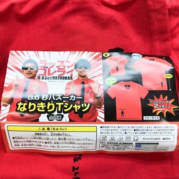 新品!ラッスンゴレライ 8.6秒バズーカー なりきり半袖Tシャツ フリー 赤 です。