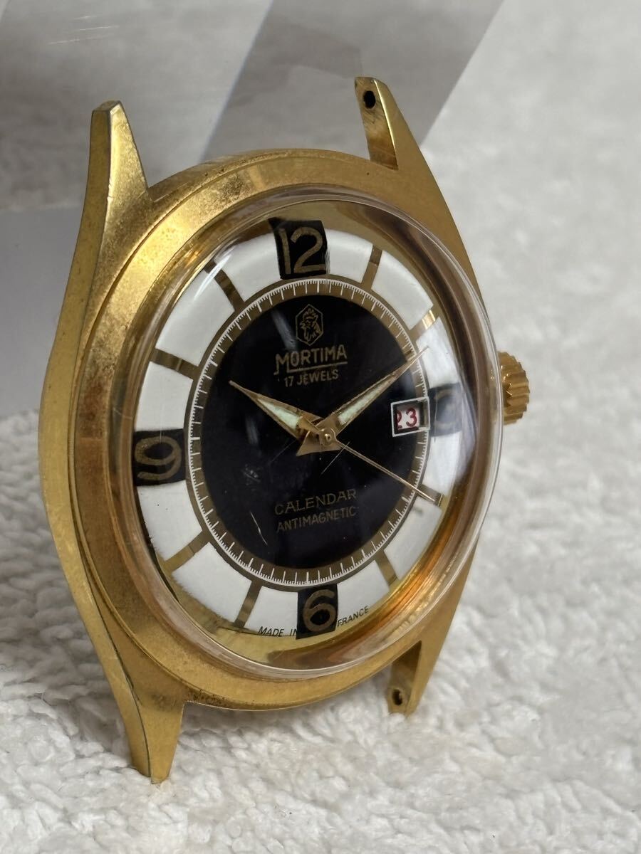 こちらMORTIMA モルティマ デラックス 手巻き デイト ブラック×ホワイト メンズの出品をさせていただきます。風防やケース面に小傷やスレなどございます。動作に関しては稼働品。竜頭使用における針の操作など問題ございません。長時間の動作確認は行なっていませんのでメンテナンスにつきましては落札者様の方でお願い致します。その他未確認ですが、ご検討宜しくお願い致します。