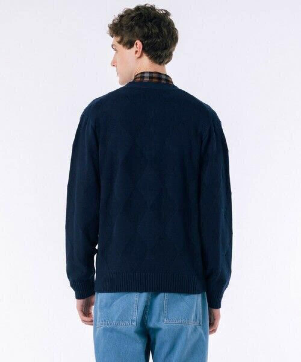 トーナルアーガイル柄 Vネックコットンニットカーディガン