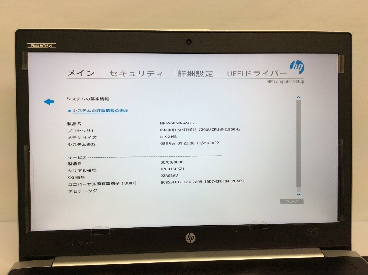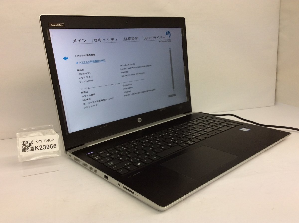 ジャンク/ HP HP ProBook 450 G5 Intel Core i5-7200U メモリ8.19GB ストレージ無し 【K23966】