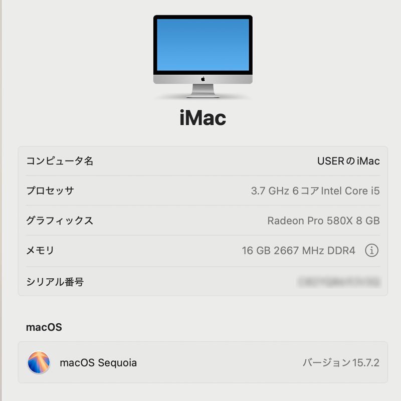 【機種名】:iMac (Retina 5K, 27-inch, 2019)
