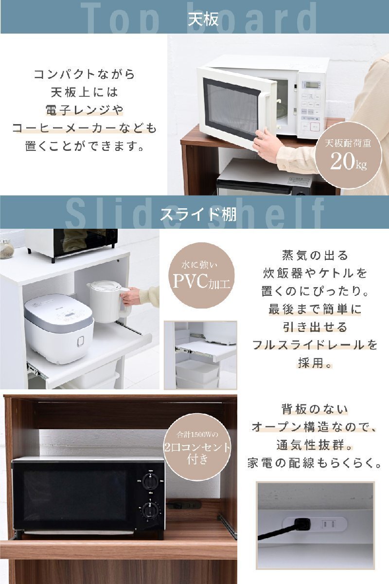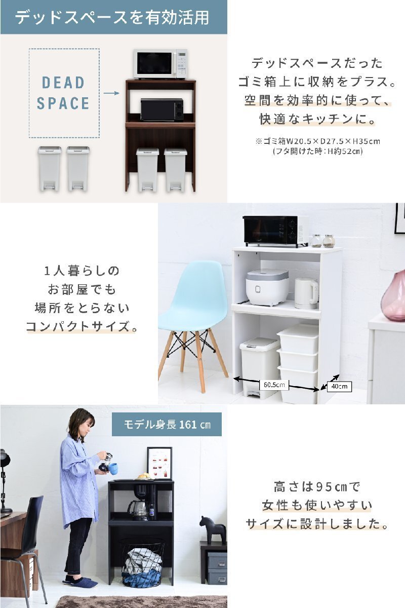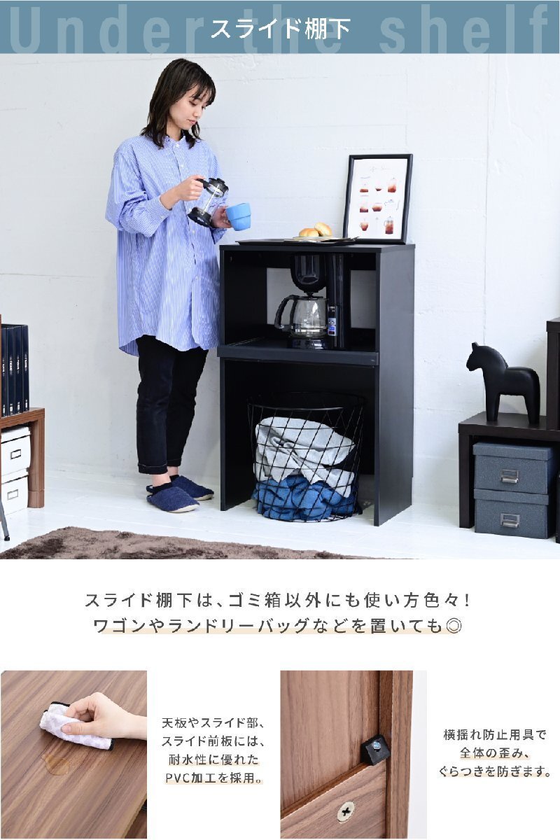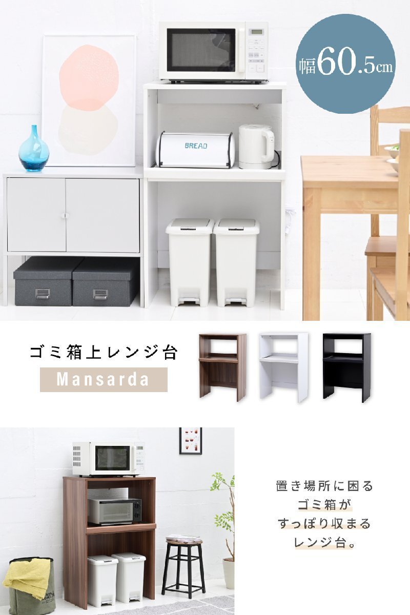 | ■商品説明 ゴミ箱の上のデッドスペースを有効活用できるキッチンラック"Mansarda"。天板にはレンジを置くことができる他、コンセント付きのスライド棚は炊飯器やケトルなどの家電を収納するのにぴったり。オープン部はゴミ箱だけでなく、小さめのラックなどの収納スペースとしてもおすすめです。 |