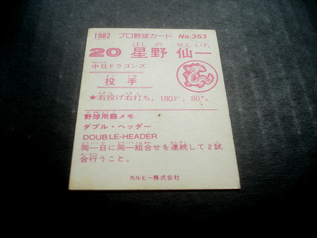 カルビー 1982年 353番 星野仙一 中日ドラゴンズ プロ野球カード 地方版 レアブロック