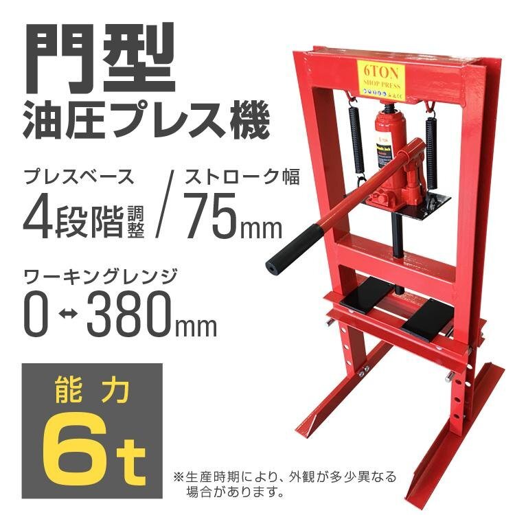 | プロ仕様、自動車・オートバイのメンテナンス用の6トンの門型油圧プレス機です。 6tまで圧力が掛けられます。大型パーツの圧入に最適! 鉄板などの歪みの修正、シャフトの曲がり直しブッシュ及びベアリング類の脱着など、機械関係、自動車整備など広範囲に大活躍です。 【商品仕様】 ・重量(約):25kg ・能力:6t ・ストローク幅:75mm ・ワーキングレンジ:0~380mm ・カラー:レッド ・専用プレート2枚付き 【注意事項】 ・組み立てが必要です。 ・大型商品なので大人2人以上での組み立てをお勧めします。 ・写真と実物は多少異なる場合がございます。あらかじめご了承下さい。 ※大型商品のため、特別中継料が適応されます。(離島+2200円/北海道+1100円/沖縄本島+2200円) 離島の方は、後ほど金額を修正してメールでお知らせさせて頂きます。 |