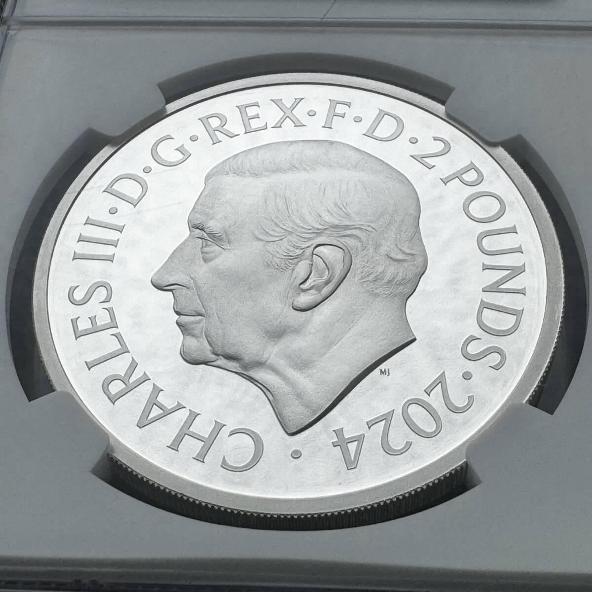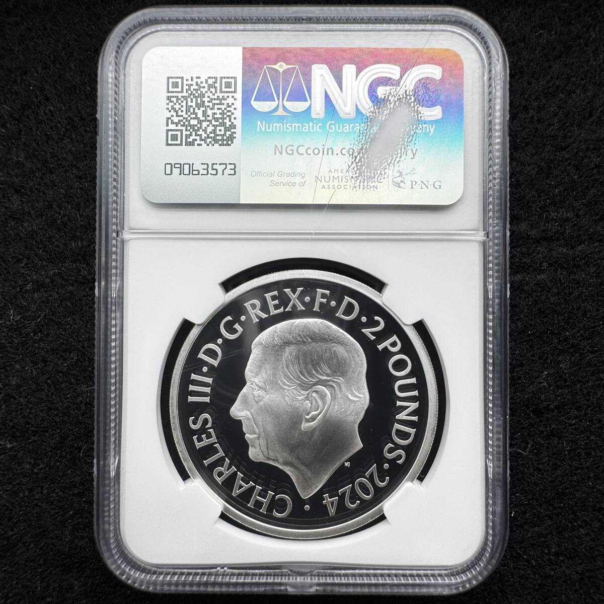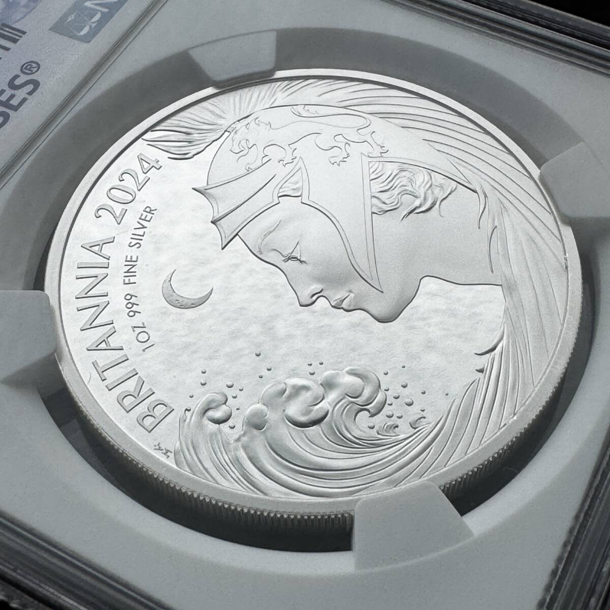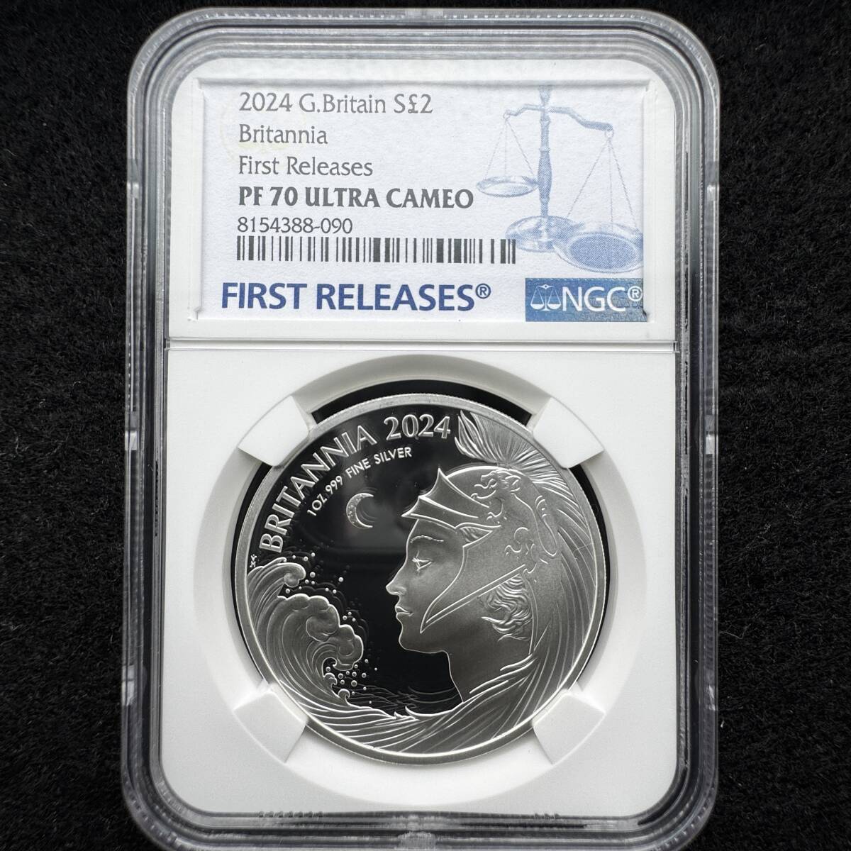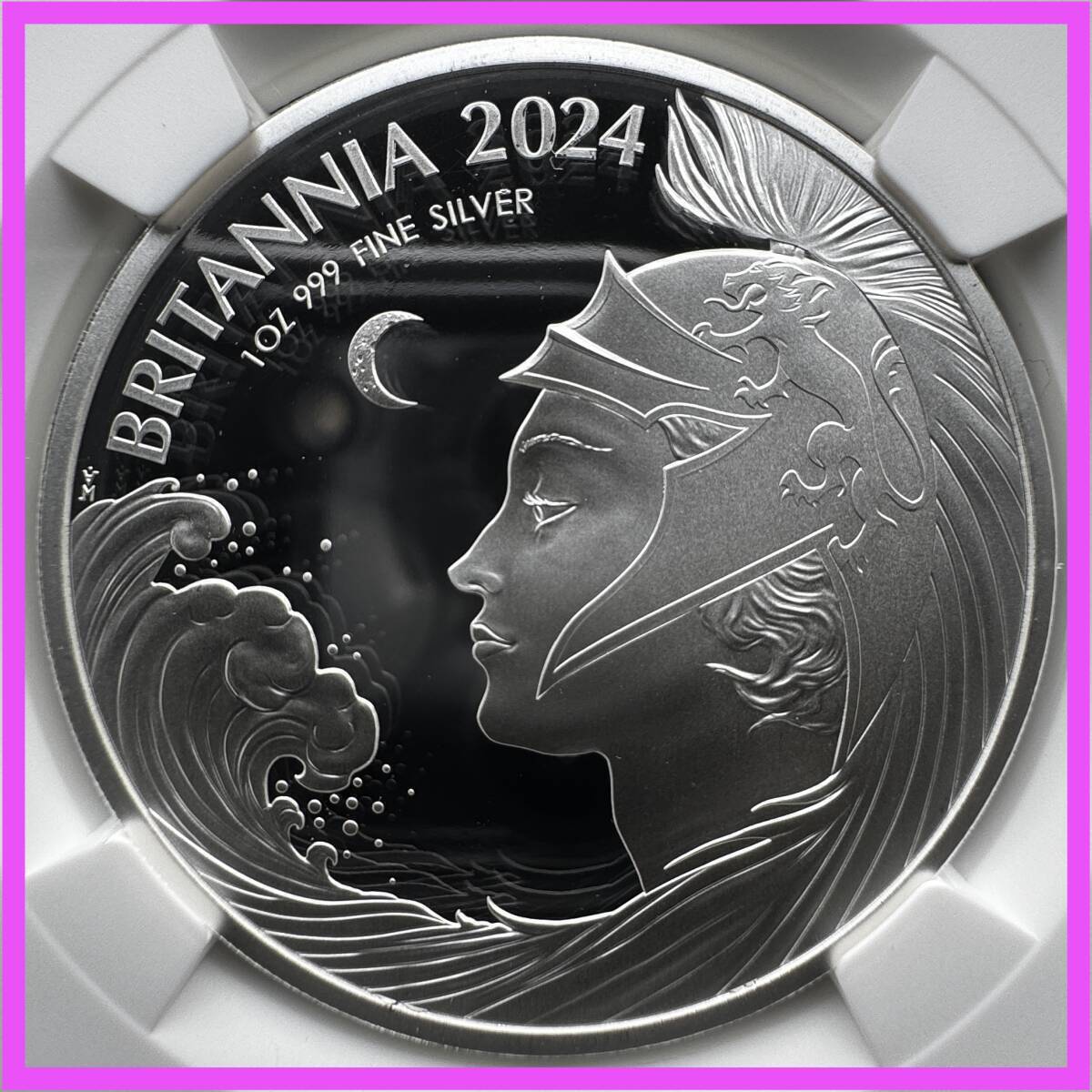 『波乗りブリタニア 最高鑑定』2024年 イギリス ブリタニア 1オンス 2ポンド 銀貨 NGC PF70 ULTRA CAMEO ファーストリリース Top Pop