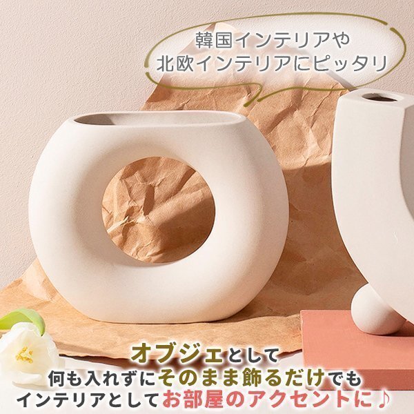 フラワーベース 花瓶 セラミック ドーナツ 一輪挿し おしゃれ かわいい つや消し陶器 洋式 白 シンプル モダン 韓国インテリア 韓国 雑貨