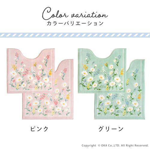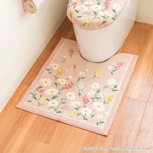オカ(OKA) フルールブラン トイレマット ロングサイズ 約75cm×63cm ピンク (洗える ロング 花柄 フェミニン)