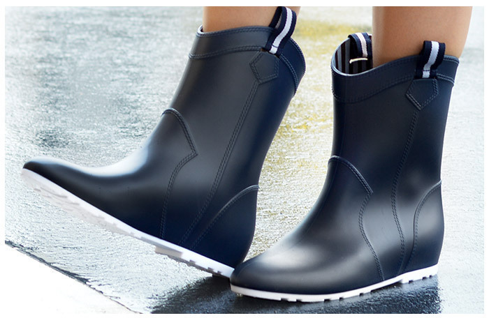 レディース 防水 ブーツ インヒール 防滑 レイン シューズ 長靴 雨 ミドル丈 ストライプ 婦人靴 スノー ウインター 18034