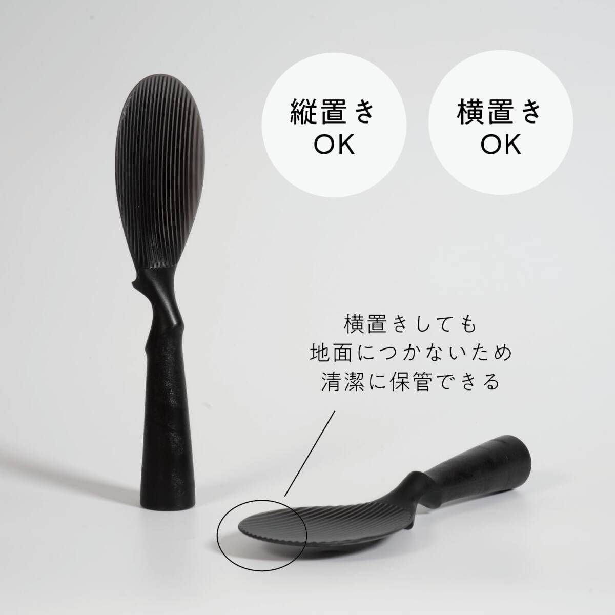 ・この立つしゃもじは木ではなく樹脂製です。水に強く、食器用洗剤や食洗器での洗浄も可能です。落としても割れにくいため、キッチンツールとして小さな子供からお年寄りまで使用でき、キャンプ用品やバーベキュー等のアウトドアにも利用できます。