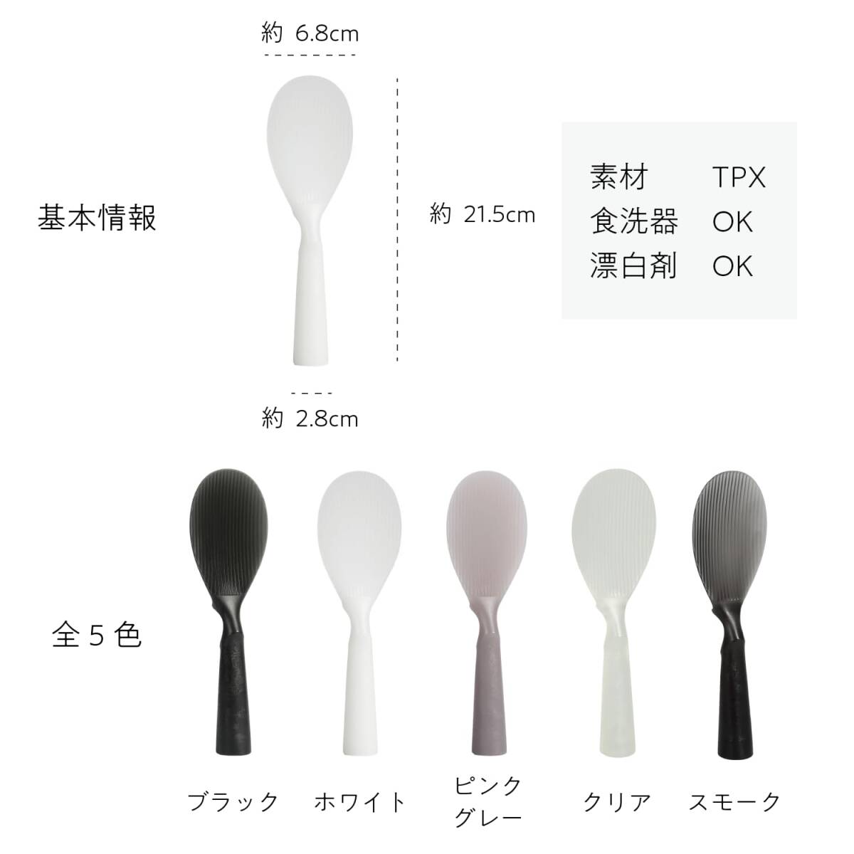 説明 【ご注意】注意】 クリアカラーでは持ち手に気泡がございます。成形上必ず入り、機能には問題ありません。 火のそばに置かないでください。 加熱した鍋・フライパン・土鍋には使用しないでください。 炊飯器の中に長時間いれたままにしないでください。 ご使用の際は、一度水につけてからご使用し、使用後は洗浄してください。ご飯がこびりつきにくくなります。 電子レンジ・オーブン等では使用しないでください。 クレンザーや研磨剤のついたスポンジの使用は製品を傷つけますのでお控えください。 食器洗浄機を使用する際は、蒸気、熱風の吹き出し口付近に置いたり容器の上に物を乗せないでください。変形する場合があります。 強い光に当て続けると変形・変色する場合があります。 製法上、型の跡、僅かな線や凹凸などがある場合がありますが、不良品ではございません。予めご了承ください。 レモン等の柑橘類に含まれるテルペンまたは油脂によって変質する場合があります。