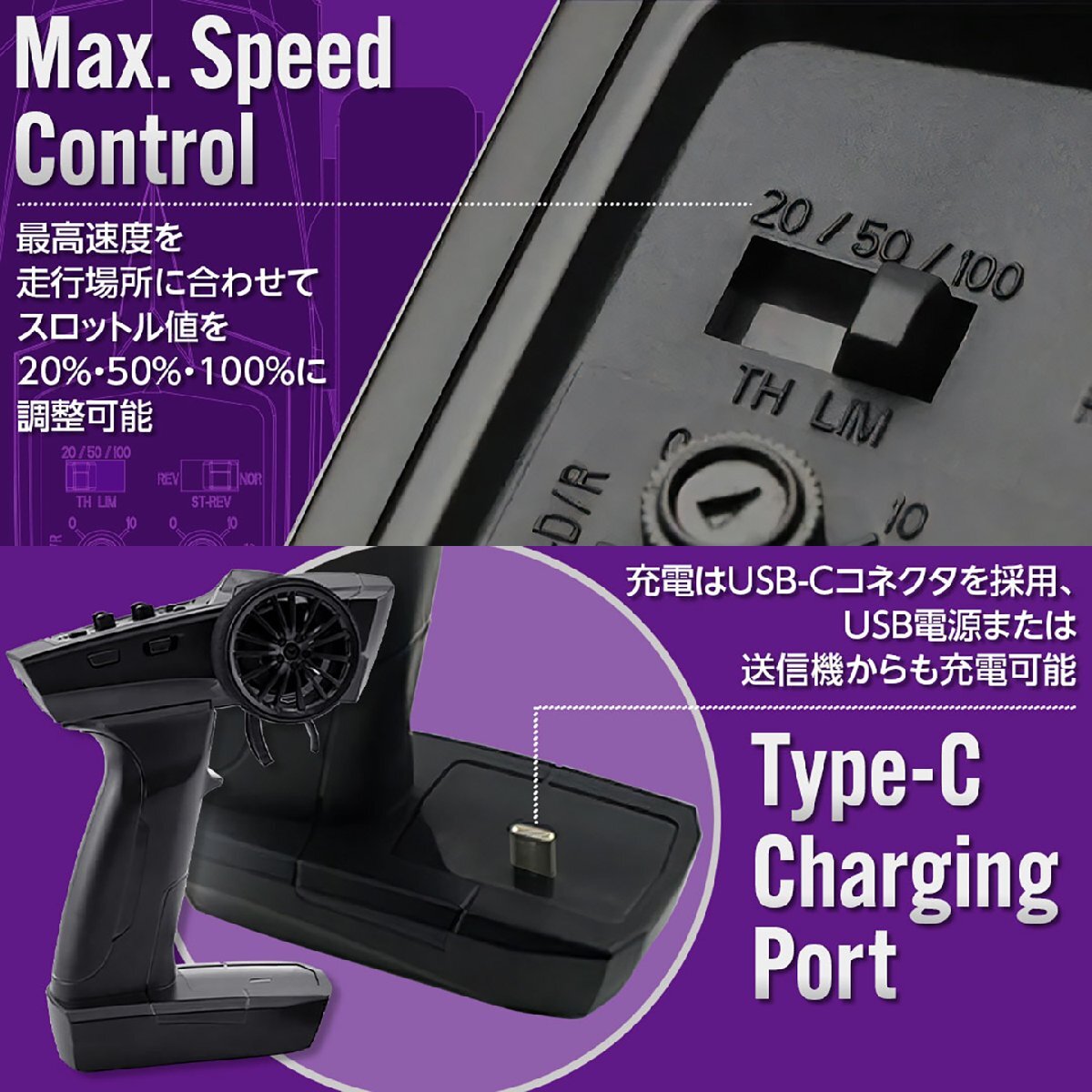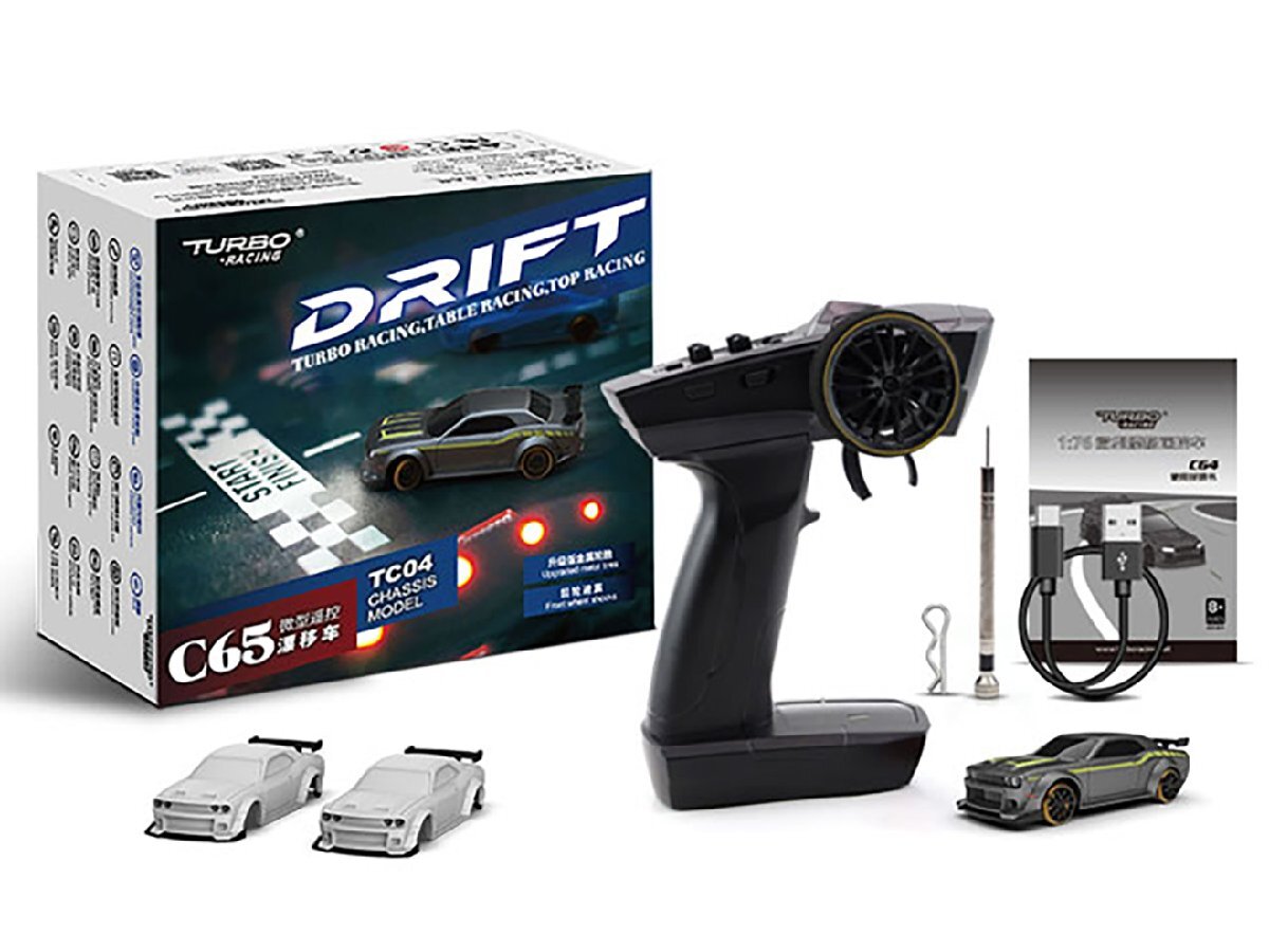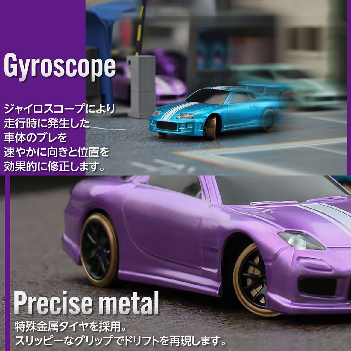 商品説明 ITEM INFO ジャイロセンサーを搭載でドリラジ完全再現 TURBO RACING 1/76スケール ドリフトカー C65シルバーグレーです。全長6cmの手のひらよりも小さいサイズながら、本格的なドリフト走行を可能にしたミニラジコンです。 ●ジャイロスコープにより走行時に発生した車体のブレを速やかに向きと位置を効果的に修正します ●送信機でジャイロ感度を調整可能、カウンターステアを自在に調整できます ●特殊金属タイヤを採用。スリッピーなグリップでドリフトを再現します ●55mAhのリチウムバッテリーで30分の長時間走行を楽しめます ●コイルスプリングサスを装備、荷重移動でスムーズなコーナリング性能 ●最高速度を走行場所に合わせてスロットル値を20%・50%・100%に調整可能 ●ヘッドライト、ウインカー、ブレーキランプ、シャーシ下面ネオン照明も装備 ●未塗装スペアボディが2枚付属、自分好みのカラーにカスタムして楽しめます ●充電はUSB-Cコネクタを採用、USB電源または送信機からも充電可能 商品基本情報・スペック ITEM SPEC ●商品名 : TURBO RACING 1/76スケール ドリフトカー C65シルバーグレー ●商品番号 : TR-DC-002 ●ブランド : TURBO RACING ●商品内容 : 車体(バッテリー内蔵)×1、2.4GHz送信機×1、クイックスタートガイド×1、スペアボディ(未塗装)×2、USB充電用ケーブル(Type-A to Type-C)×1、バインドピン×1、ドライバー×1 ●スケール : 1/76 ●駆動モード : 2WD ●走行距離 : 30m ※ ●ステアリング : プロポーショナル ●走行時間 : 30分 ※ ●重量 : 21g ●登坂角度 : 30° ●バッテリー : Li-po 3.7V 75mAh ●周波数 : 2.4GHz ●サイズ : 67.5×28.8×19.5mm ※走行環境、バッテリーの状態により異なります。 注意事項 ITEM NOTE ∇商品固有の注意事項 ※送信機用に単四電池4本が別途必要になります。 ※USB充電を行なう際はUSB充電器(5V/1A)が別途必要になります。 ∇ご購入時の留意事項 ※商品はすべて点検してからのお届けになります。商品によってはパッケージの開封等を行う場合もございますことをご了承ください。 ※商品には万全を記しておりますが、万一不備な点がございましたら、お手数ですがお問い合わせフォームにてご連絡頂ますようお願い致します。 ※商品が適合外であった場合、またはお客様都合による交換・返品・返金は出来ません。よくお確かめの上、ご購入下さい。 ※モニター環境により、実際の商品の色と若干異なる場合がございますのでご了承下さい。 ※他サイトでも同時販売の為売り切れの際はご了承下さい。 ※売り切れの際は早急にご連絡させて頂きます。(当社休業日を除く) 関連商品 RELATED ITEM