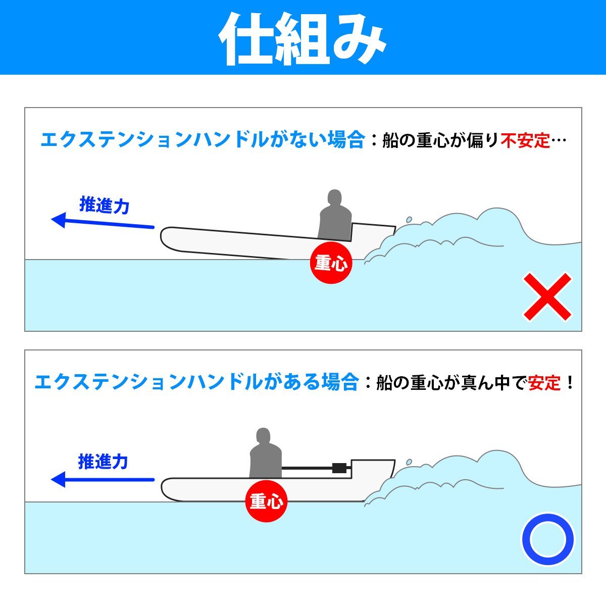 エクステンション チラーハンドル 小型ボート ゴムボート 後重心を解消! ハンドコントロール 船外機 にも使用可能 操縦 ハンドル 棒