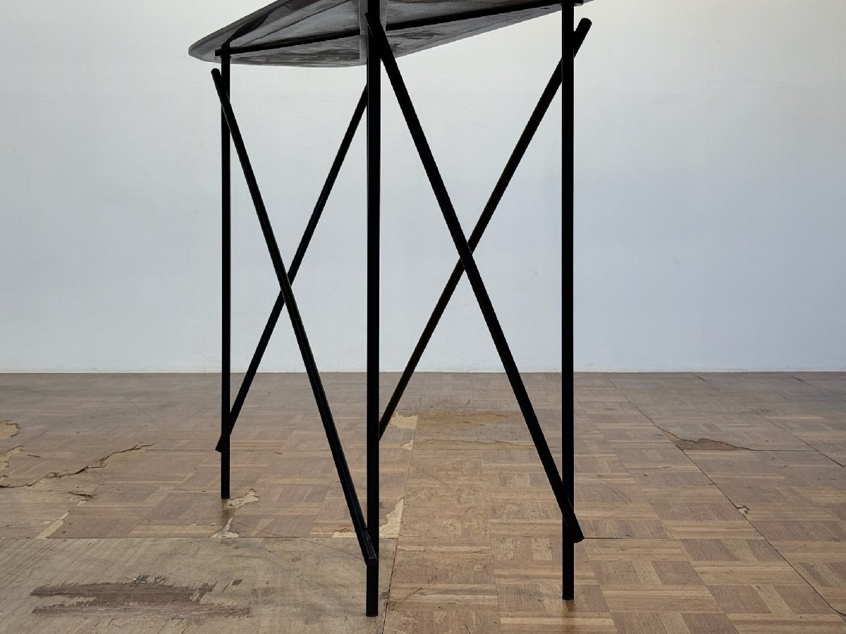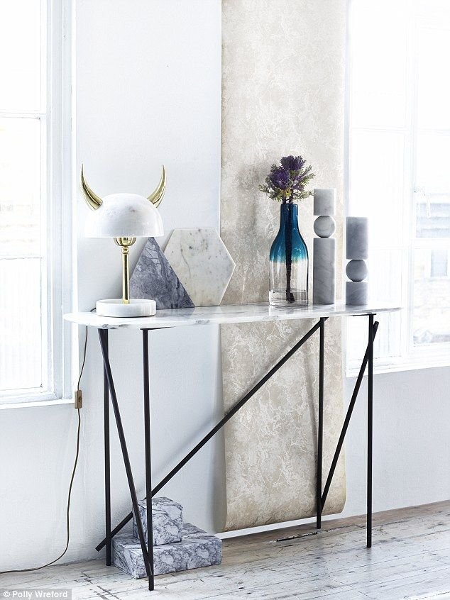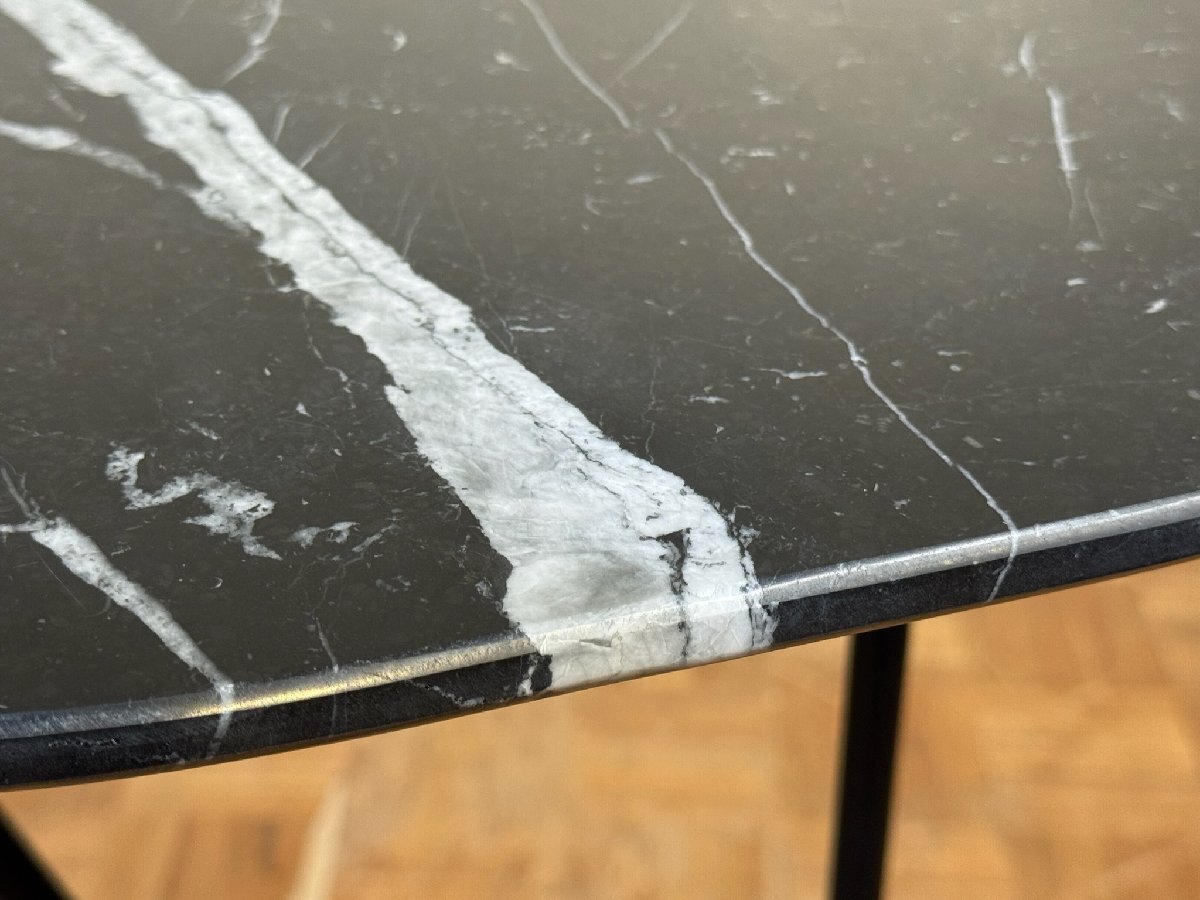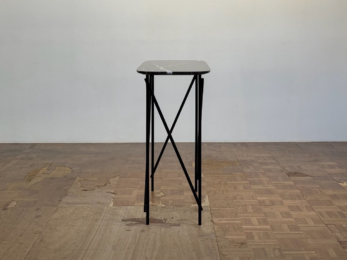 重厚な最高品質大理石材・Black Marquina Marble / ブラックマルキーナ大理石とほっそりとしたスチールポールの造形で、プロダクトデザインの重心バランスを巧みにコントロールして角度によって表情の変わる芸術的な構成に落とし込んだ、あらゆるデザインカテゴリと共鳴する普遍美を追求したコンソールテーブルボードラック。THE CONRAN SHOP. より。