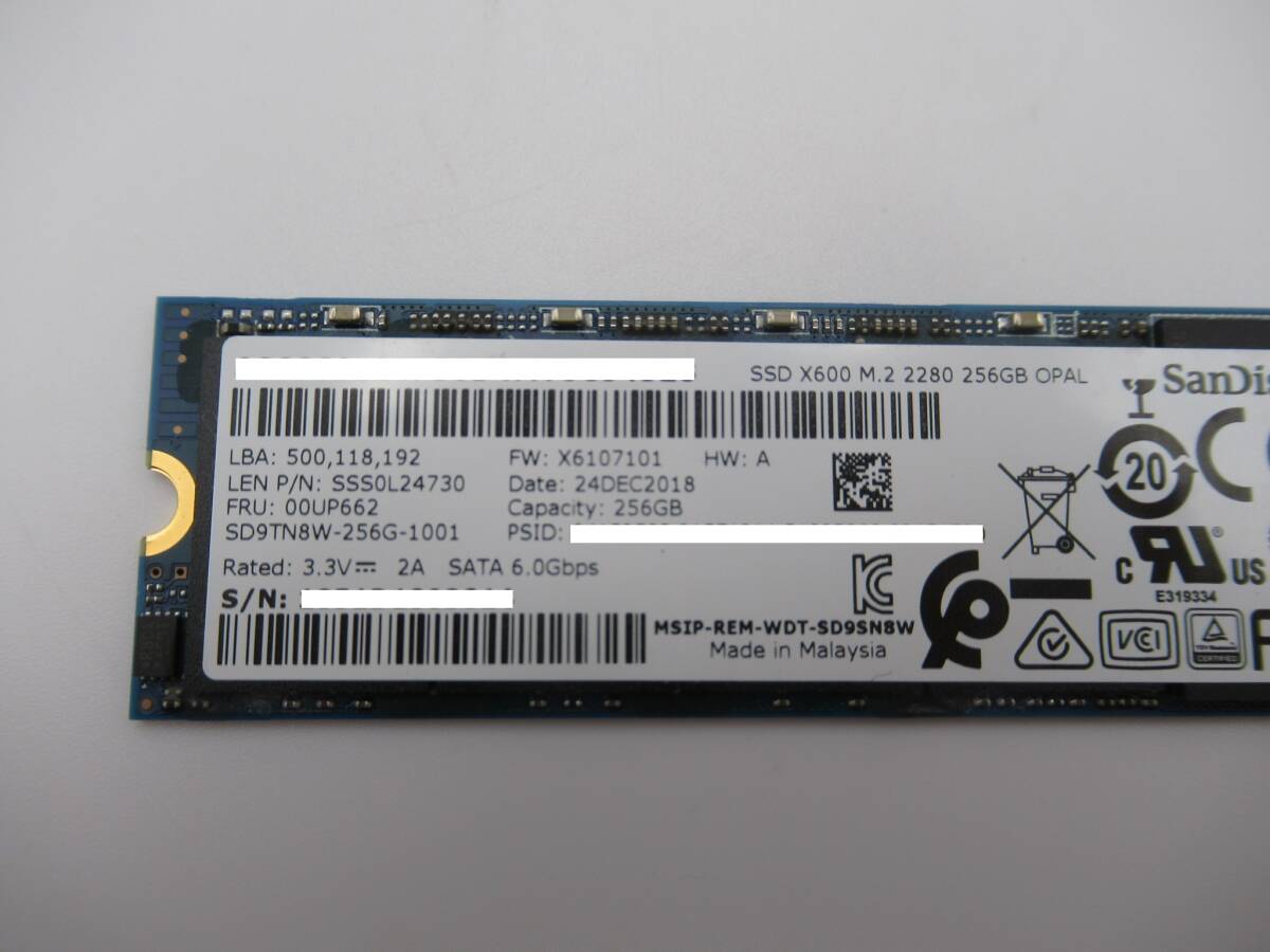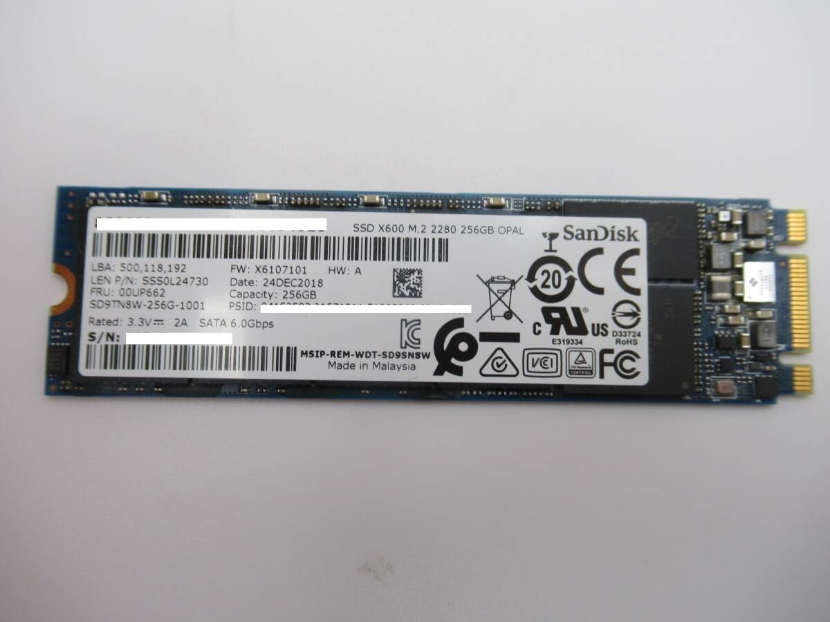 | ★商品説明★ | Sandisk SATA SSD X600 M.2 2280 256GB 1枚 中古 動作確認済みです。 写真は現物です。写真にもご確認の上ご入札下さい。 中古品ですので使用感が御座います。動作確認済みですが、相性は保証いたしません。 適用機種はよくご確認した上で、ご入札くださいませ。 |