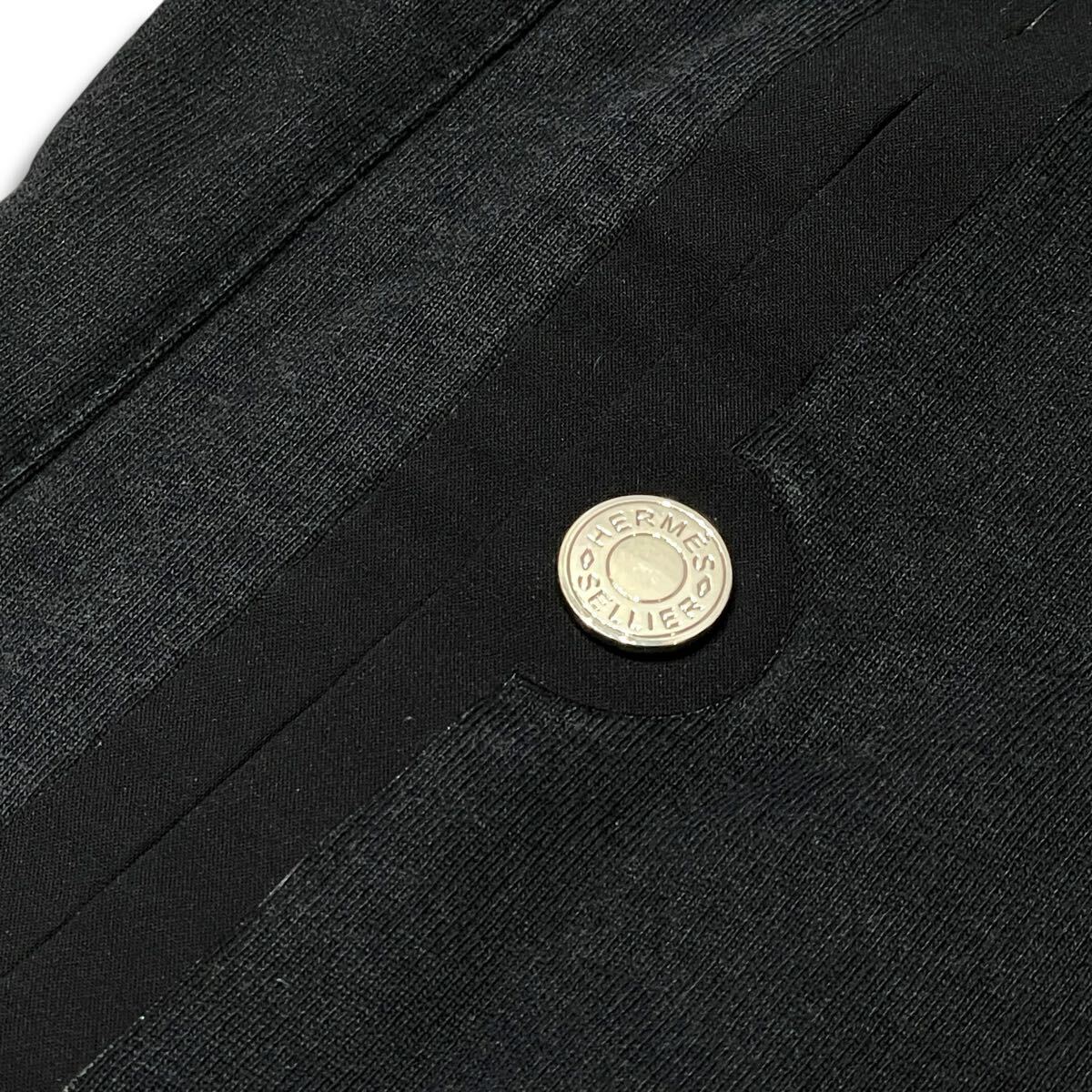 - 右サイドの携帯電話用ポケットのクロージングに《エルメス・セリエ》をエングレービングしたクルー・ド・セルのスナップボタン