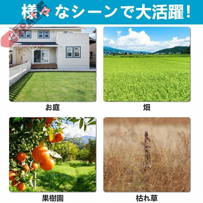 | 【強力な切断力で作業効率UP】 | 家庭用草刈機は高回転数で素早く草刈りができ、短時間で作業効率がアップします!また、刈り込み幅23cmで切断面積を大きく増やすとともに作業スピードが上がり、切面が綺麗で大面積の庭や空き地の草切りに効率よく作業できます。 |