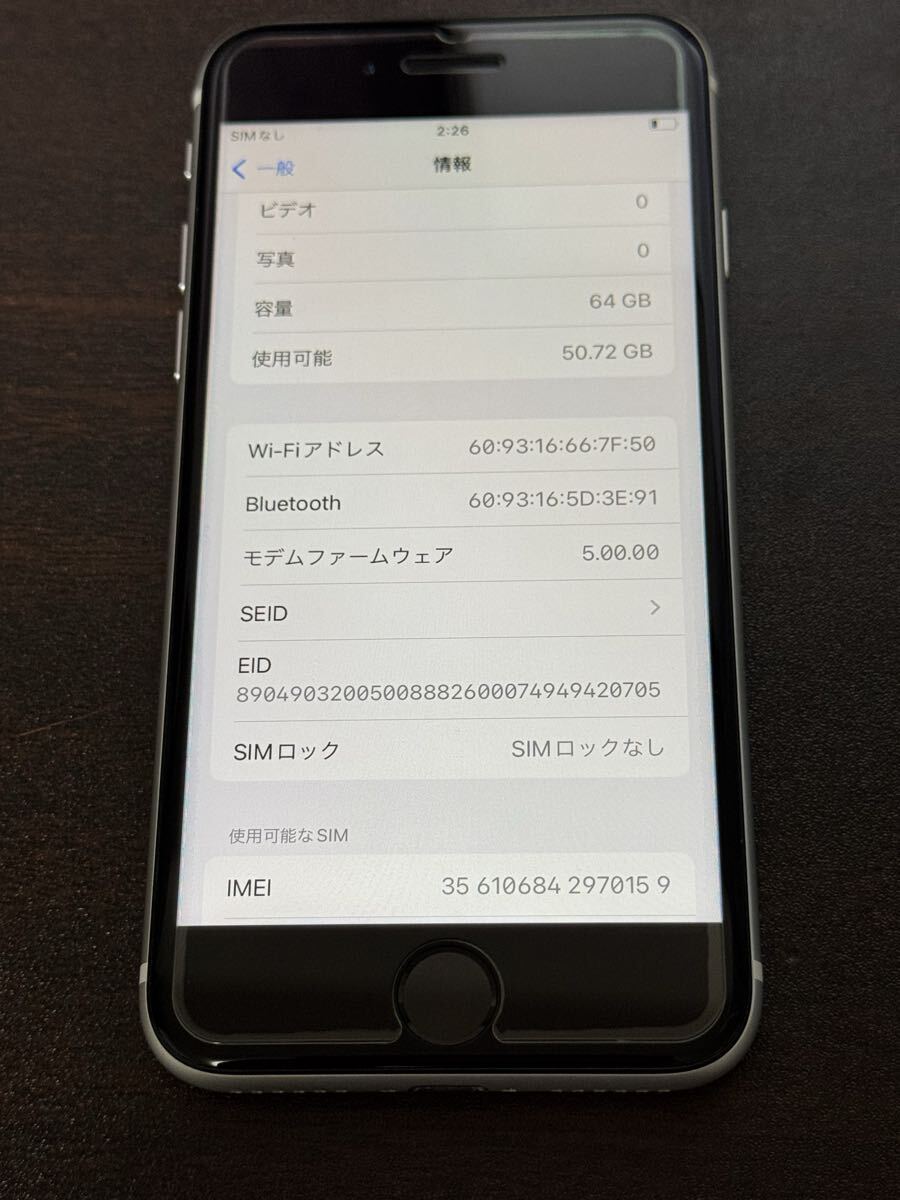 iPhoneSE 第二世代 64GB ホワイト バッテリー100% SIMロック解除済 中古美品