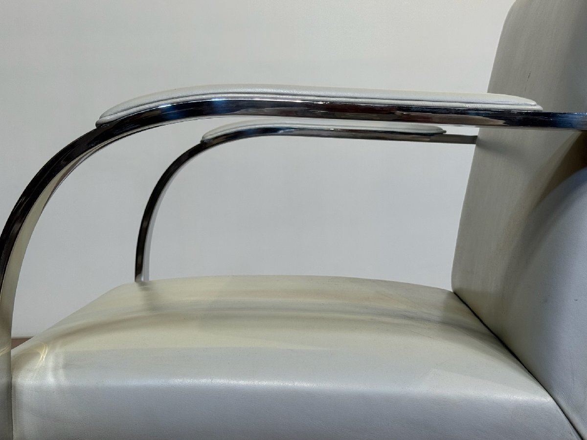 その反省を踏まえ完成されたブルーノチェアでは、フレームにはスチールバーが使用されており、エッジと緩やかな曲線を具有したデザインは、ブルーノ邸建築に際してデザインされたものでしたが、世界中からの協賛を得、不動の人気を誇ります。