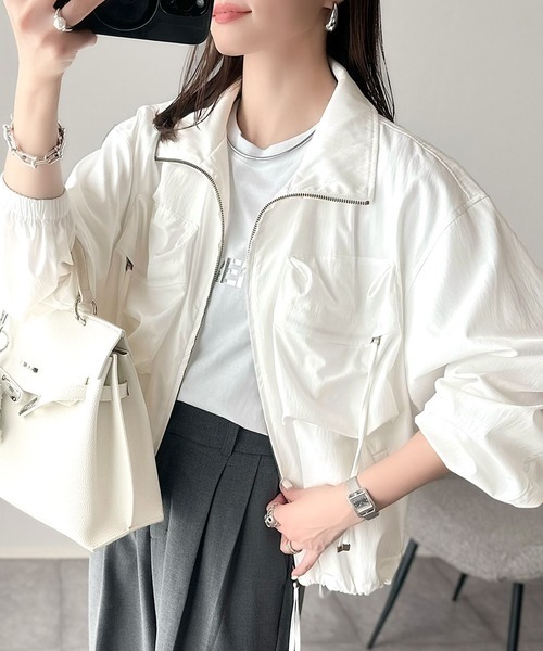 キーワード:ブルゾン アウター レディース ジップ ナイロン 無地