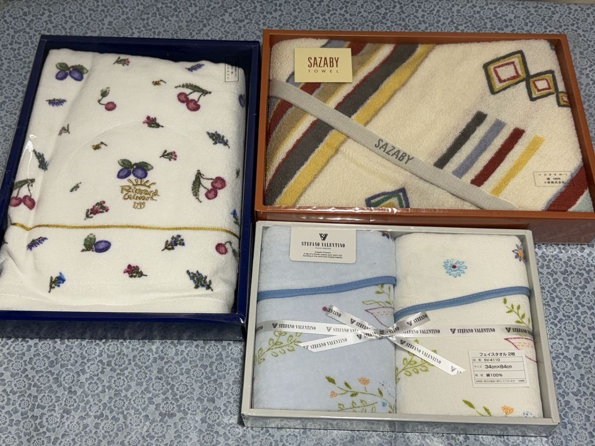 ■商品名バスタオル・タオル・ハンドタオル まとめ 42点■内容{サイズ(約)/(画像参照/素人採寸)}未使用品※長期保管の為汚れあり《シミ》箱から出して梱包※撮影時は箱に入っておりますが箱なし梱包での発送になります。ご了承いただける方のみ入札お願いいたします。・バスタオル×3・フェイスタオル×22・ハンドタオル×17・現在スマートフォンでは文章の表示が異常になる場合がございます。不明点などございました際はご質問ください。・梱包サイズ、送料は下部の発送詳細欄に記載がございます。ご参照のほど宜しくお願い致します。■詳細・長期保管の未使用品。・状態→長期保管品のため少々汚れ有り。・大きさは画像を参照ください。・新品同様をお求めの方は購入を御遠慮願います。・画像の物が全てになります。・画像を参照の上ご判断宜しくお願い致します。・専門知識が無い為詳しいことはわかりかねます。・長期保管で保管期間/購入日は不明の為、品質保証はできかねます。・ご理解ご了承いただける方のみのご入札をお願い致します。■同梱について複数落札商品の同梱についてはヤフオク機能の《まとめて取引》よりご依頼ください。なお、ヤフオクの規定により落札後72時間以内の商品が同梱の対象になります。また、評価が低い落札者様につきましても《まとめて取引》がご利用頂けません。詳しくは以下にて、宜しくお願い致します。【まとめて取引の手順】【まとめて取引の条件】・割れ物など壊れやすい物は、破損防止の観点から同梱はできませんが、落札後《まとめて取引》にてご対応いただけた場合は複数個口にて発送致します。送料は個別対応より割引になります。・個別取引にて同梱をご希望の場合は必ず送料連絡前に取引ナビにてご連絡いただけますようお願い申しあげます。