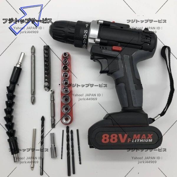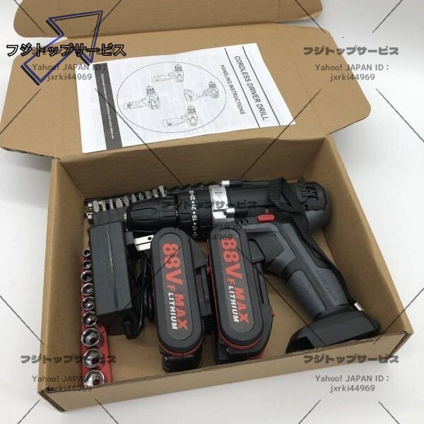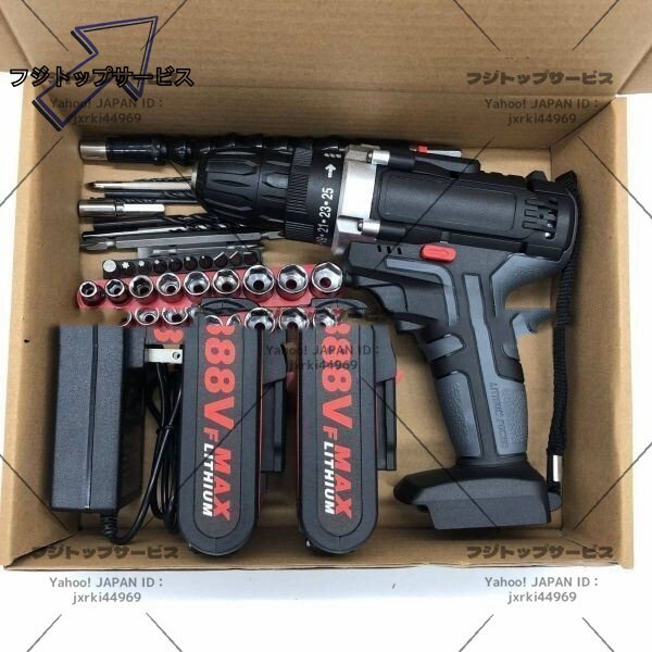 1円 電動ドライバー 多機能 リチウム電池*2個 充電器付 電動ドリルドライバー 充電式 正反転切替 長続航 正逆切替 29点セット レッド付新品