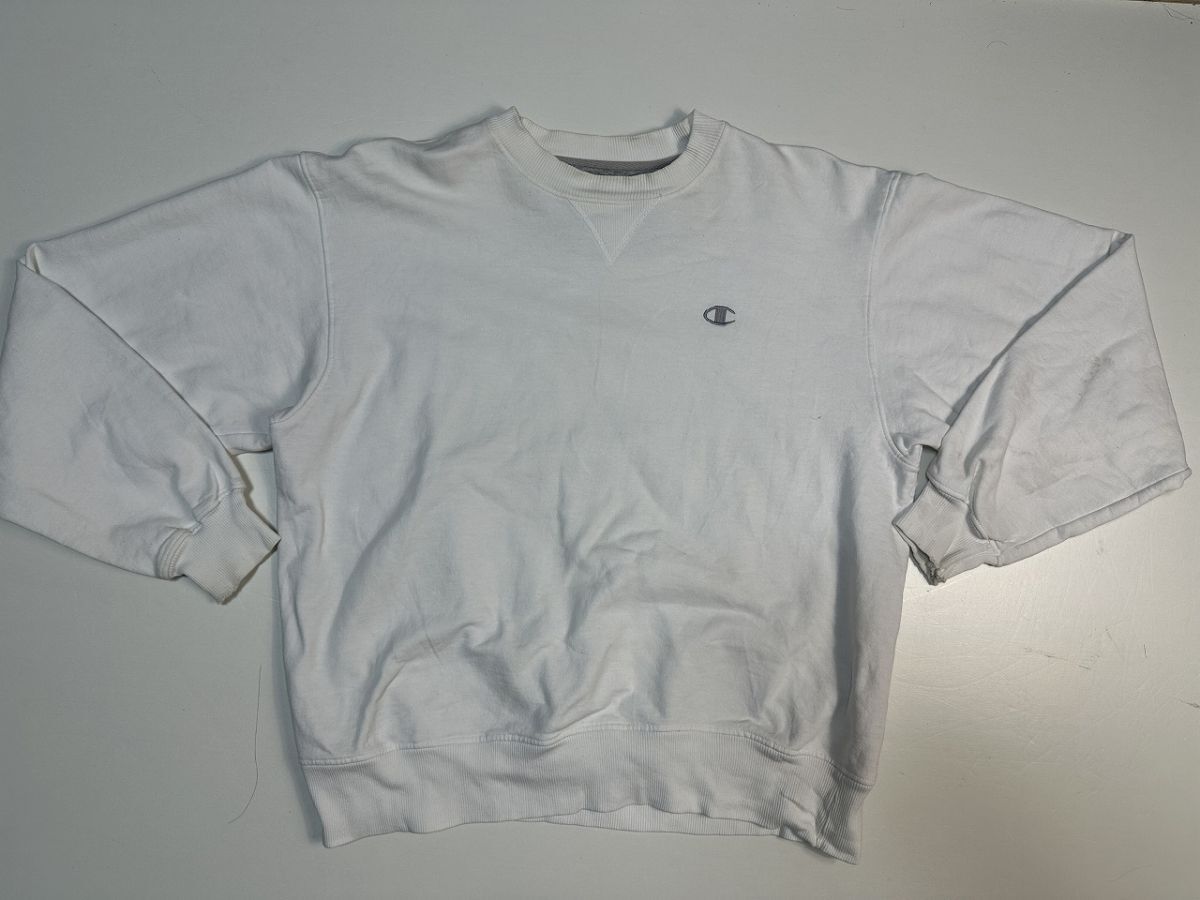 ●US USED Champion チャンピオン スウェット トレーナー ロゴ刺繍 裏起毛 白ホワイト【M】