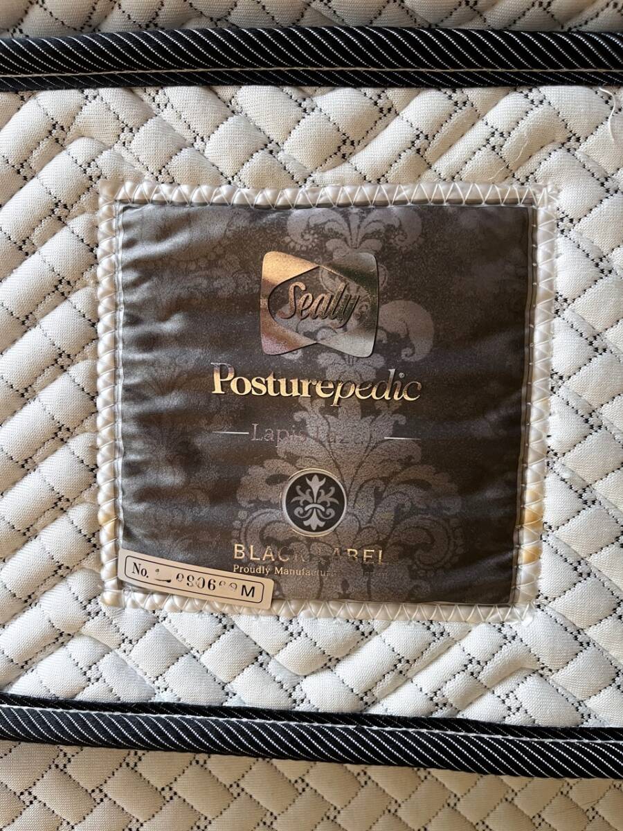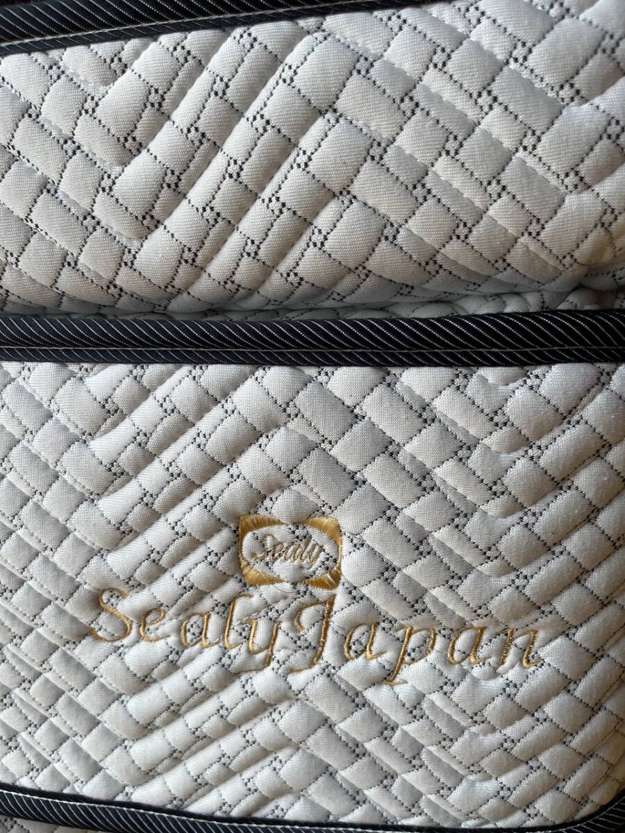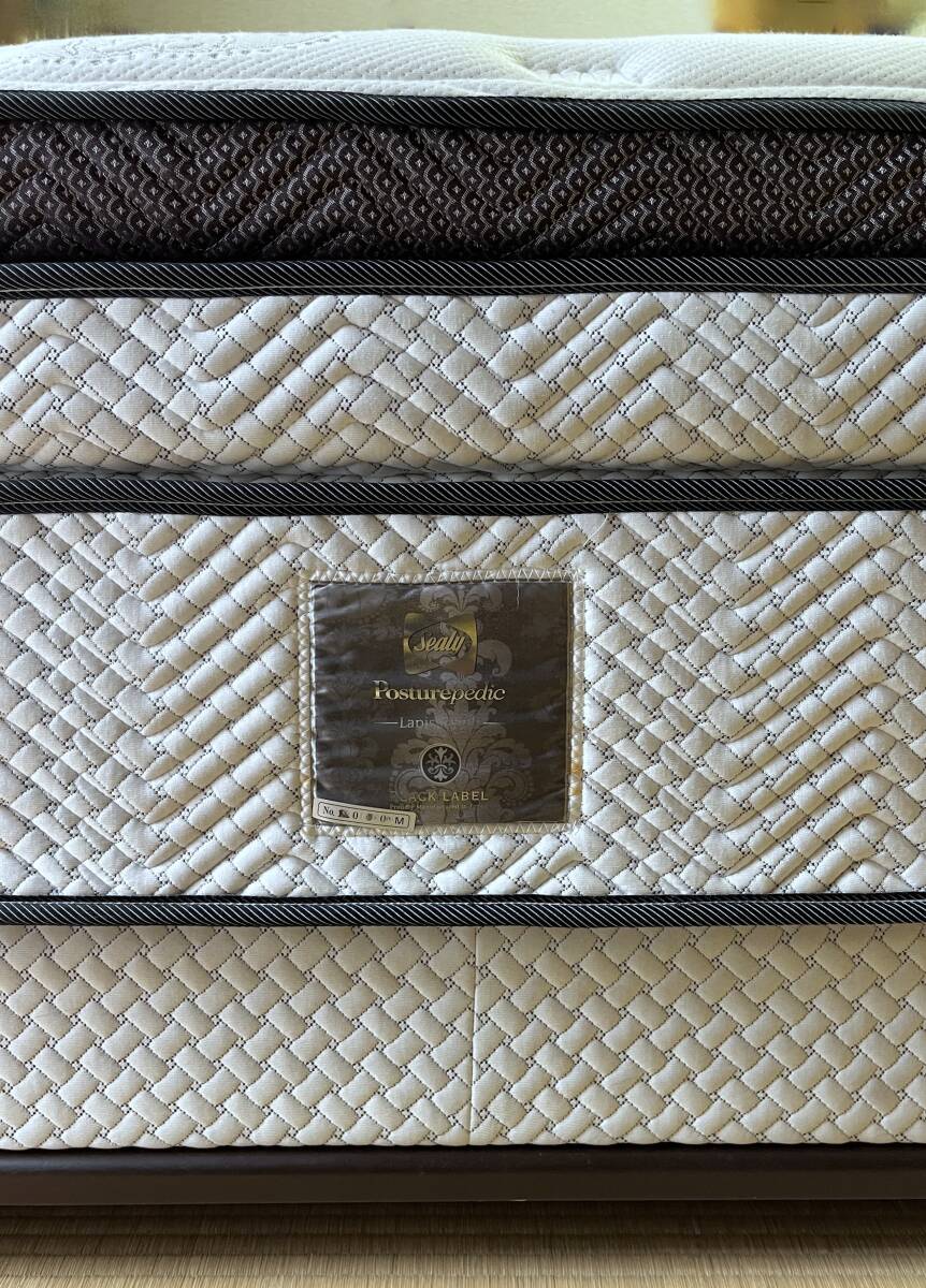 | Sealyシーリーの最上級モデルBlack Labelのダブルベッドです。高さのあるマットレス。マットレスが何層にもなっているので、ふんわり優しく支えられているような上質なやわらかさです。柔らかめですが、柔らかすぎないちょうど良い硬さだと思います。 *ヘッドボードはついておりません。マットレスを置く木製の台はついています。 *シーリーのお店で購入しております。たぶん10年はたっておりますが、ほとんどゲスト用として使用しておりました。定期的にセルフクリーニングをしておりましたが、マットレス上部には黄ばみや汗じみがあります。 ●Sealyシーリー ダブルサイズベッド ●実寸サイズ:横140cmxたて195cmx高さ67cm **詳細サイズ** ・マットレス1番上:47cm ・マットレス2番目:13cm ・木製の台:7cm ●Posturepedic Lapis Lazuli Black Label ポスチャーペディック ラピスラズリ ブラックラベル ●Sealy Japan刺繍入り ●日本製 **ご注意ください** *マットレス上部に大きい汗じみ、黄ばみがあります。 *マットレス2番目の角にスレ、ヤブレがあります。 *木製の台に少し欠けがあります。 *中古品ですので、状態を写真にてご確認ください。ご理解の上ご入札ください。気になる方、神経質な方はご入札をお控えください。 | |||