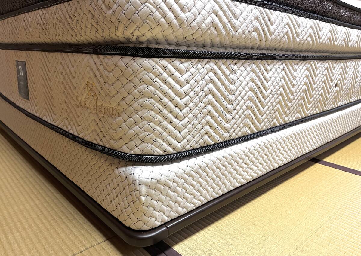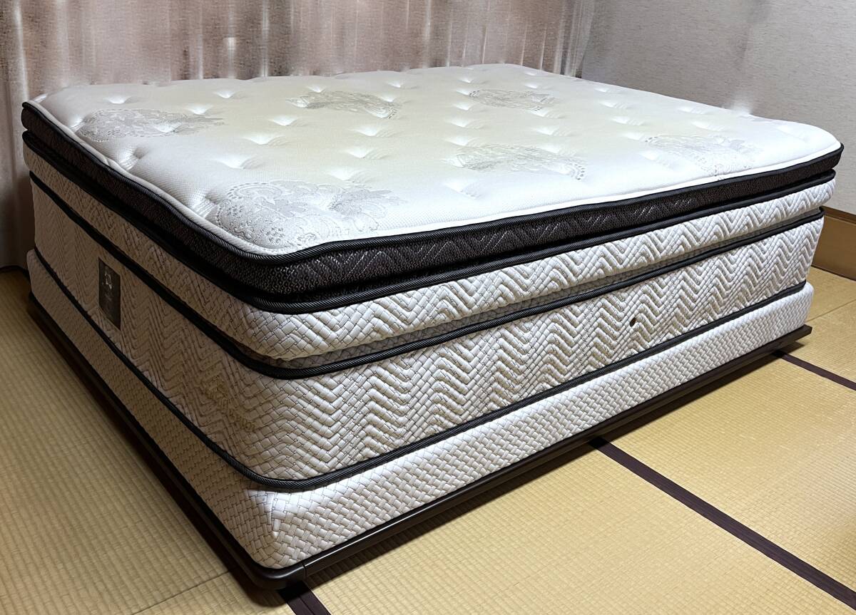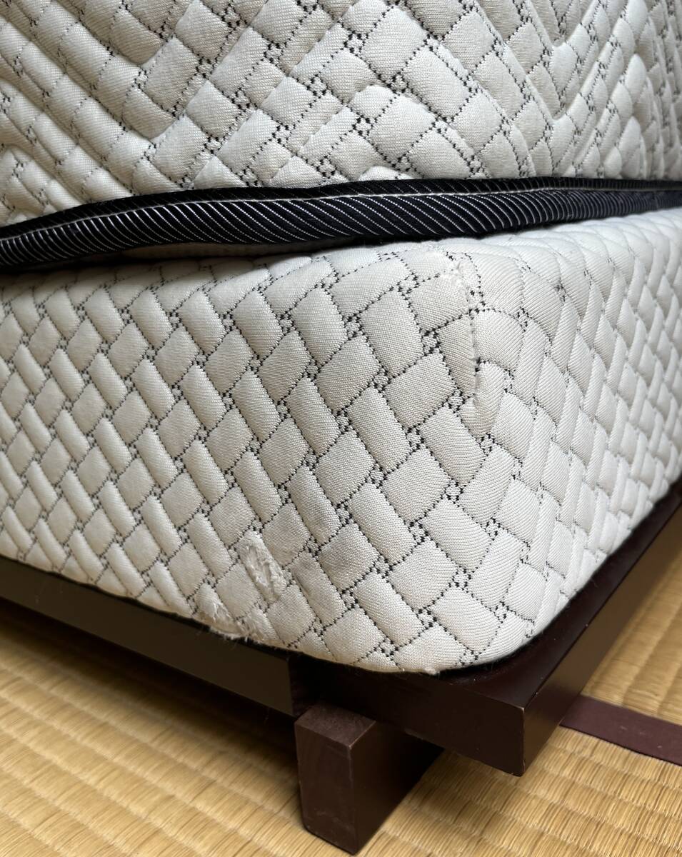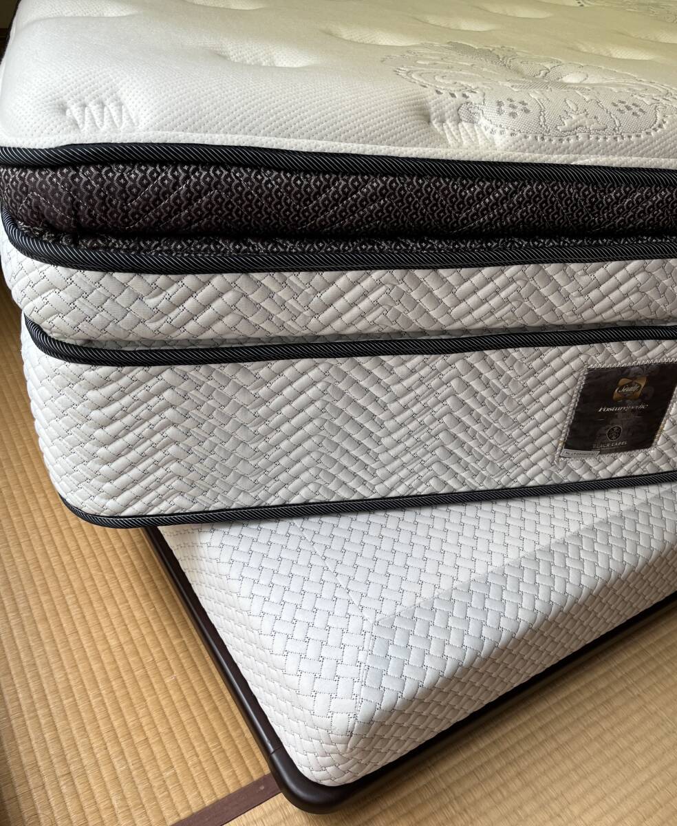 | Sealyシーリーの最上級モデルBlack Labelのダブルベッドです。高さのあるマットレス。マットレスが何層にもなっているので、ふんわり優しく支えられているような上質なやわらかさです。柔らかめですが、柔らかすぎないちょうど良い硬さだと思います。 *ヘッドボードはついておりません。マットレスを置く木製の台はついています。 *シーリーのお店で購入しております。たぶん10年はたっておりますが、ほとんどゲスト用として使用しておりました。定期的にセルフクリーニングをしておりましたが、マットレス上部には黄ばみや汗じみがあります。 ●Sealyシーリー ダブルサイズベッド ●実寸サイズ:横140cmxたて195cmx高さ67cm **詳細サイズ** ・マットレス1番上:47cm ・マットレス2番目:13cm ・木製の台:7cm ●Posturepedic Lapis Lazuli Black Label ポスチャーペディック ラピスラズリ ブラックラベル ●Sealy Japan刺繍入り ●日本製 **ご注意ください** *マットレス上部に大きい汗じみ、黄ばみがあります。 *マットレス2番目の角にスレ、ヤブレがあります。 *木製の台に少し欠けがあります。 *中古品ですので、状態を写真にてご確認ください。ご理解の上ご入札ください。気になる方、神経質な方はご入札をお控えください。 | |||