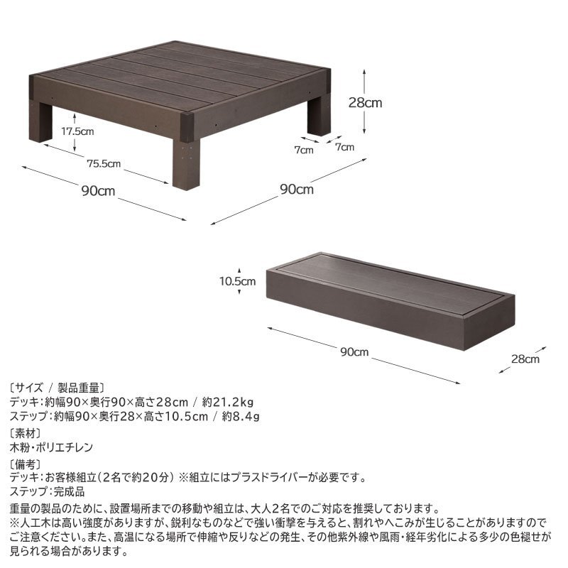デッキ:約幅90×奥行90×高さ28cm / 約21.2kg