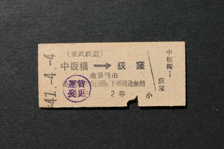 東武鉄道 乗車券 中板橋→荻窪 60円2等