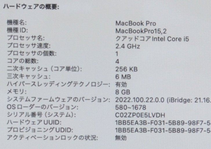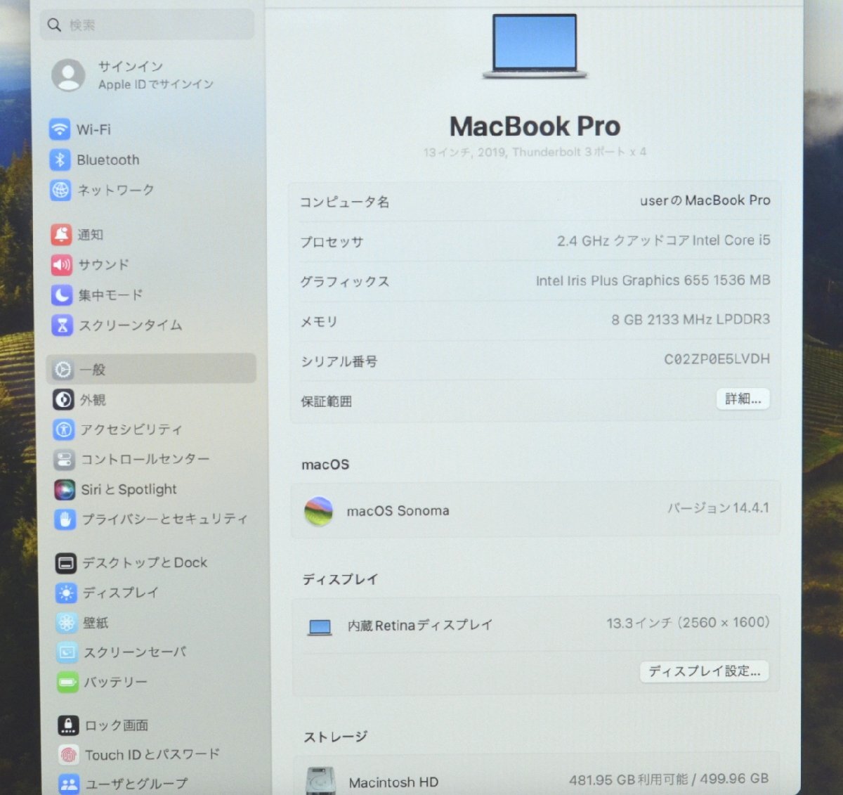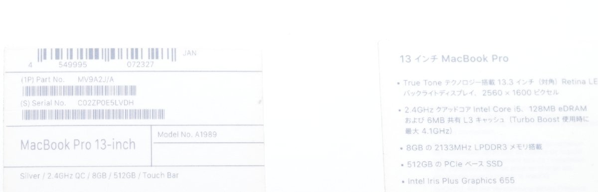 MacBook Pro (13-inch, 2019, Four Thunderbolt 3 ports) MV9A2J/A シルバー 2.4GHz Core i5 メモリ:8GB SSD:512GB P0E5