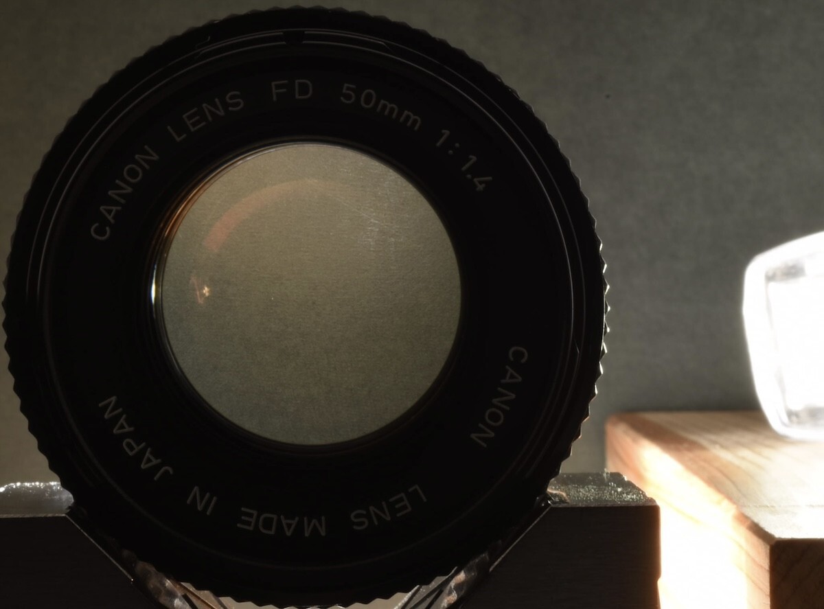 光学系:強烈なLED逆光ではオールドレンズにありがちな白い点が見られます。