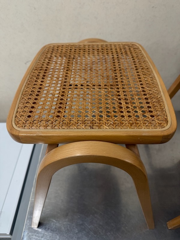 | 中古品です。 座面にホツレがあります。 座面に座ると若干沈みます。 各所にキズがあります。 古い物なので現状でお願いします。 サイズ(約):幅450mm×奥行き380mm×高さ450mm | |