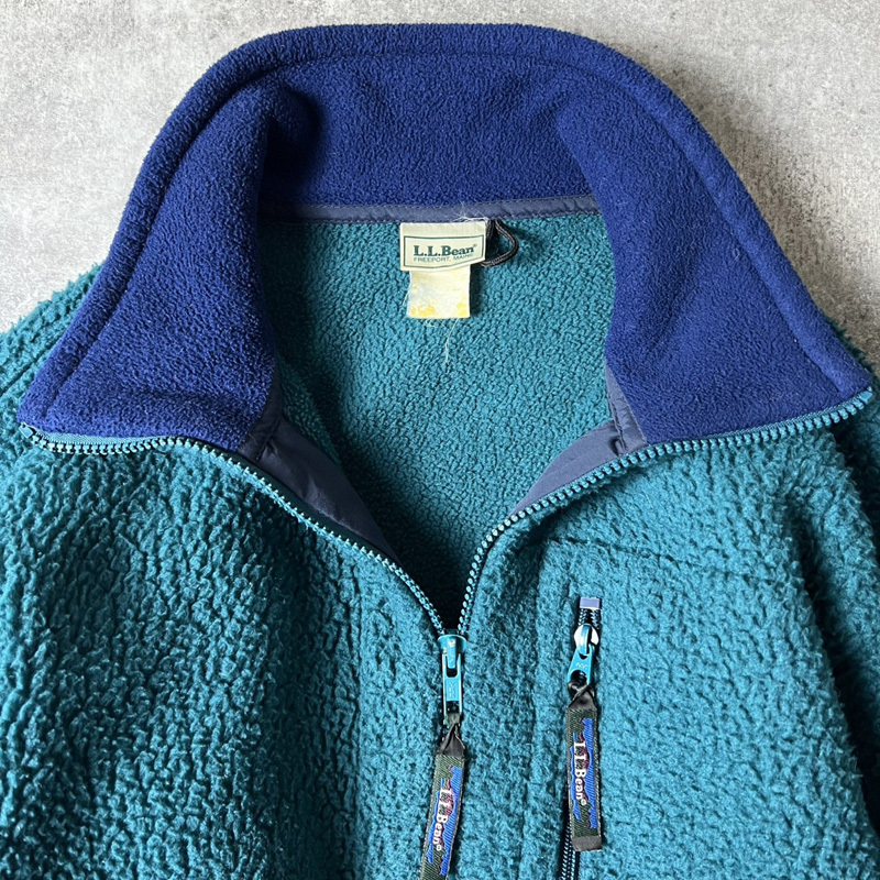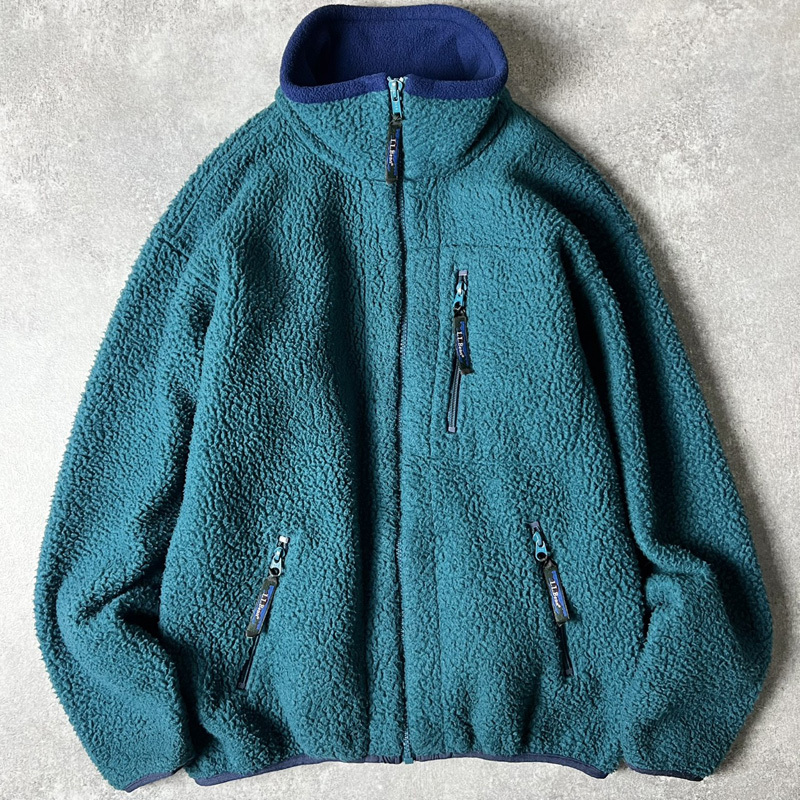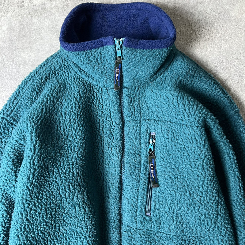 90s LLBean フルジップ パイル フリース ジャケット / 90年代 エルエルビーン オールド カタディン ロゴ ターコイズ