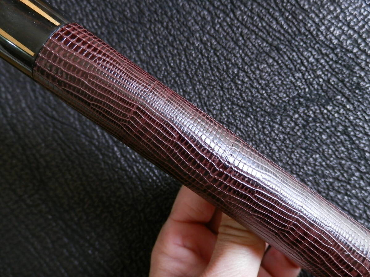 | 本革製品を販売する上でお知らせいたします、 このグリップに使用されている革は、天然素材の特性を生かし、自然な感 じを損なわない様仕上げられています。 このため、完全な色止め加工を 施しておりませんので、使用に伴う摩れ、手汗などで、色落ち、変退色、 磨耗により、風合いが変わることがあります これは、革本来の特性、個性とご理解お願いいたします | ||