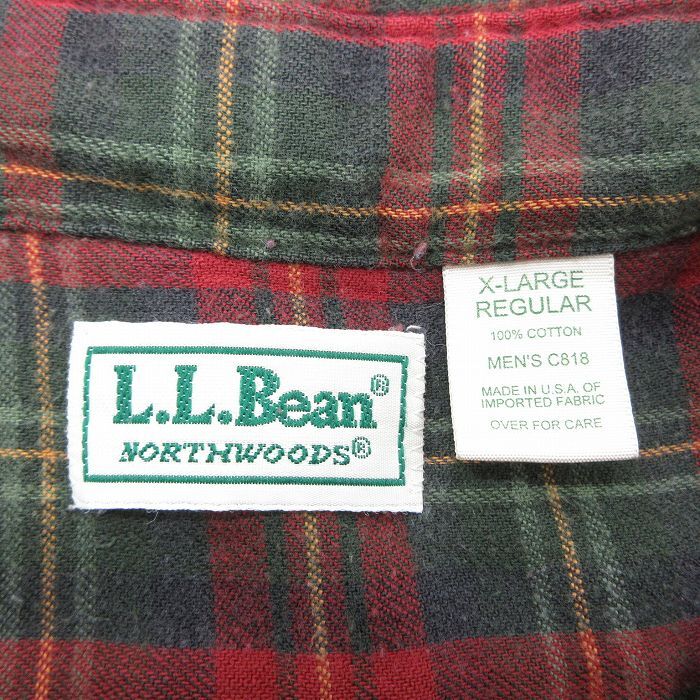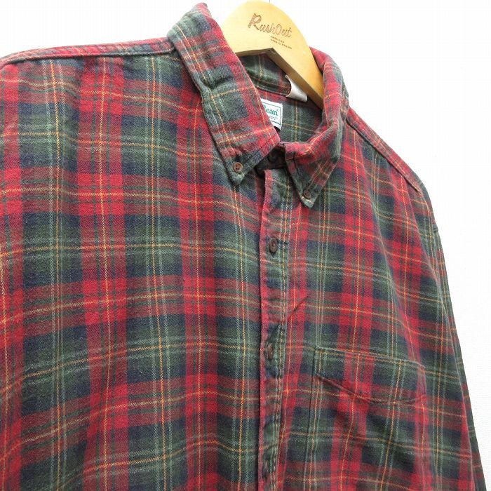【商品名】 XL★古着 エルエルビーン 長袖 フランネル シャツ メンズ 90年代 90s 大きいサイズ コットン ボタンダウン USA製 赤他 タータン チェック
