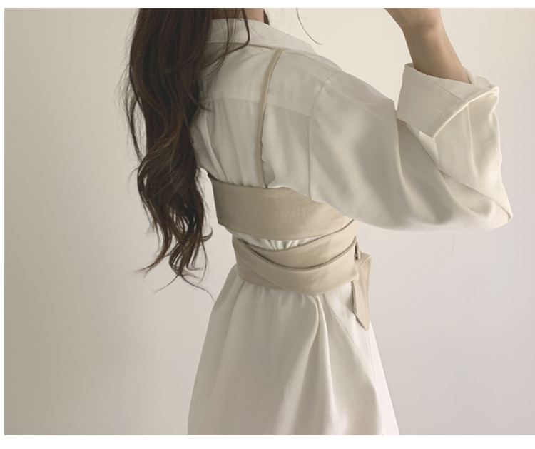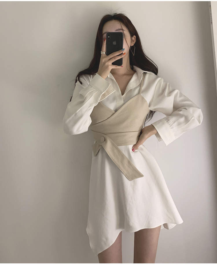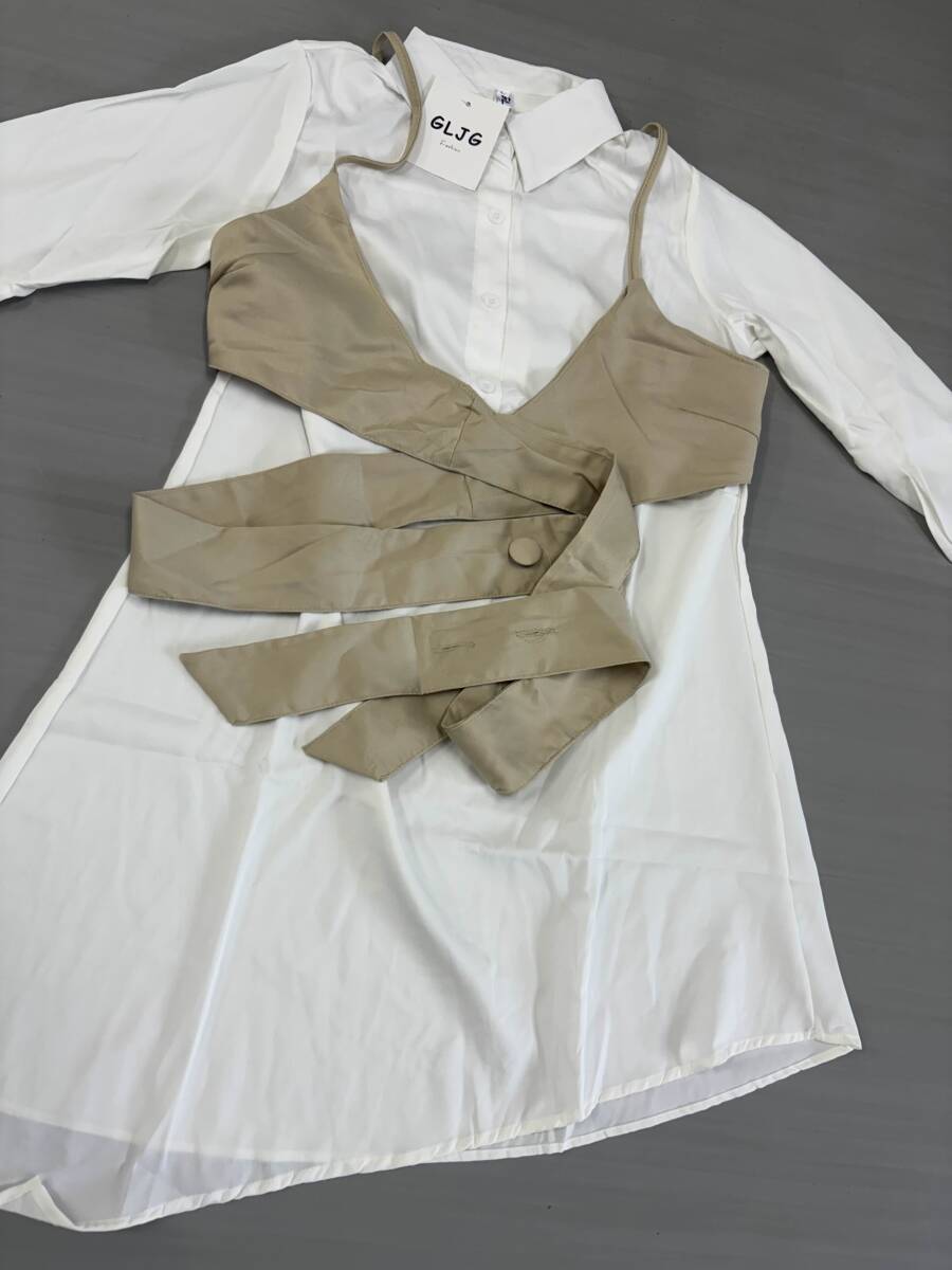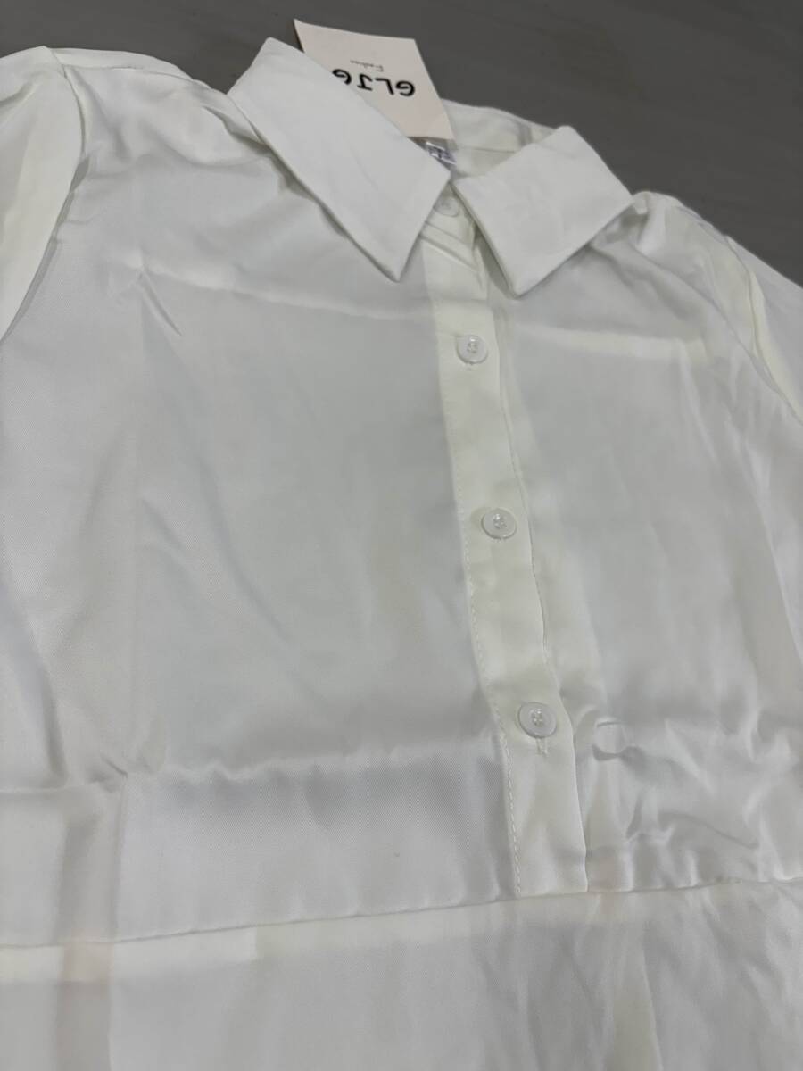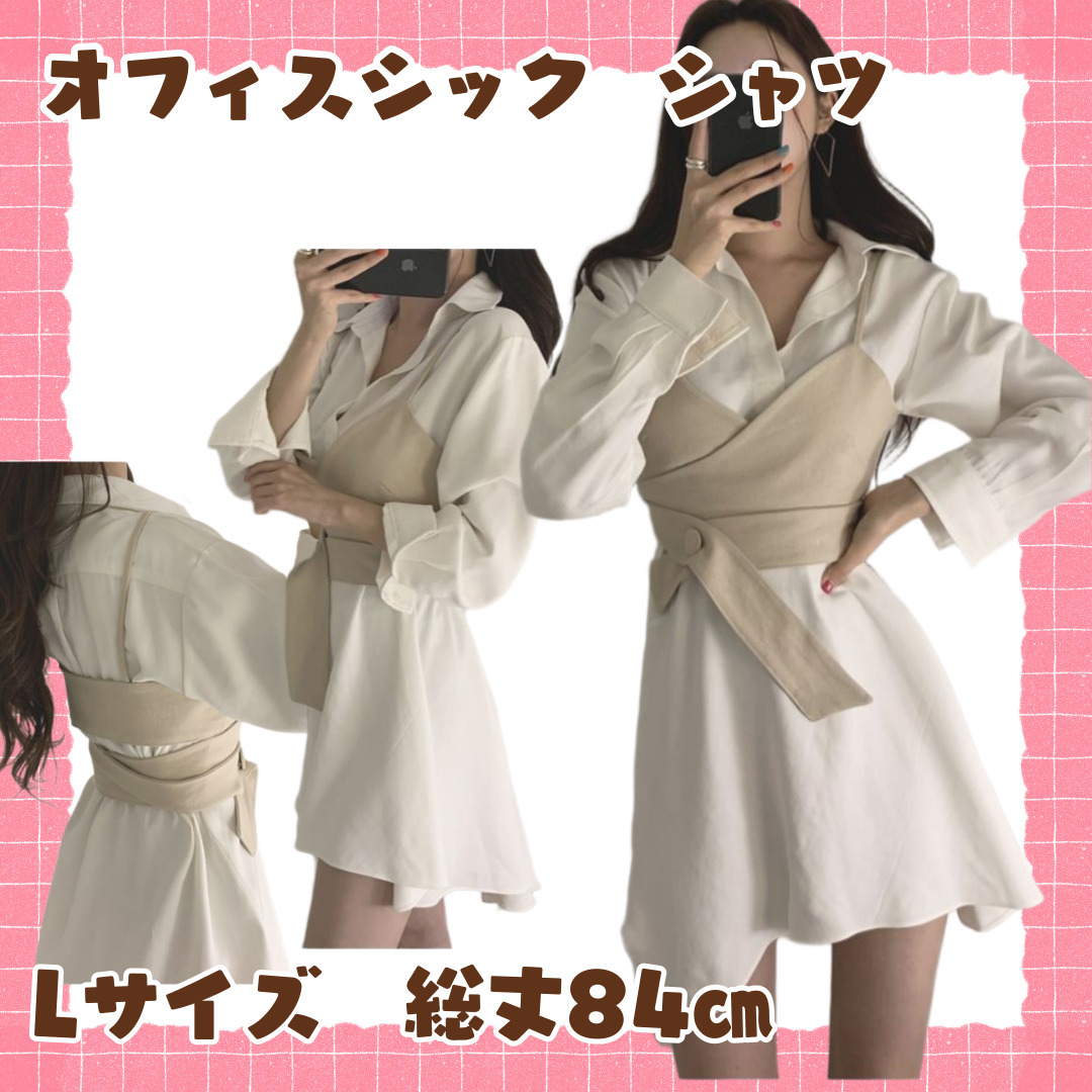 ◆新品未使用◆新品L総丈84㎝オフィスシック トレンドセッター シャツ ワンピース ホワイト×ホワイト001590L
