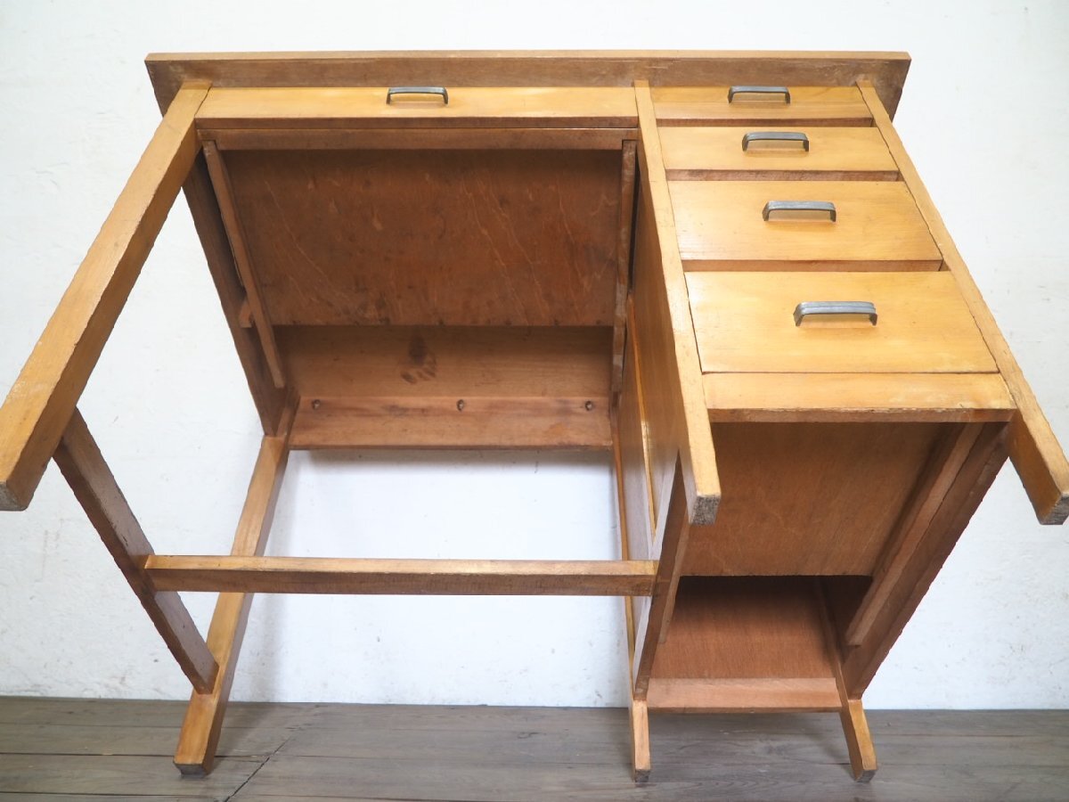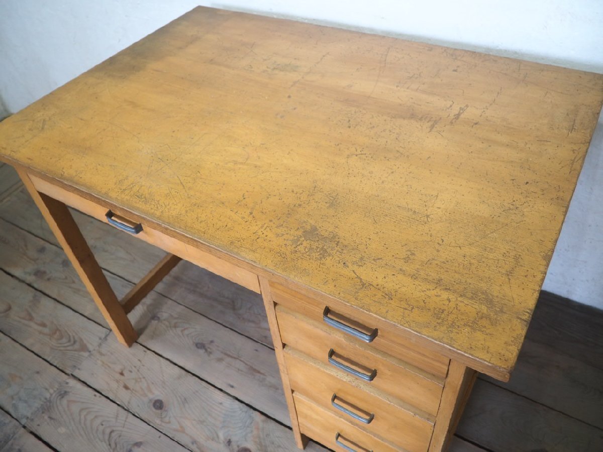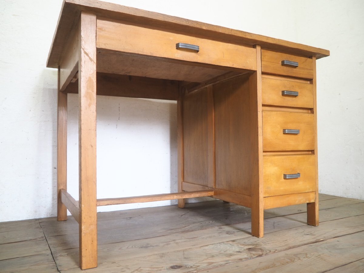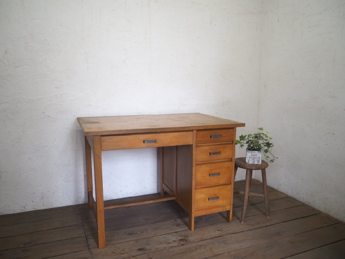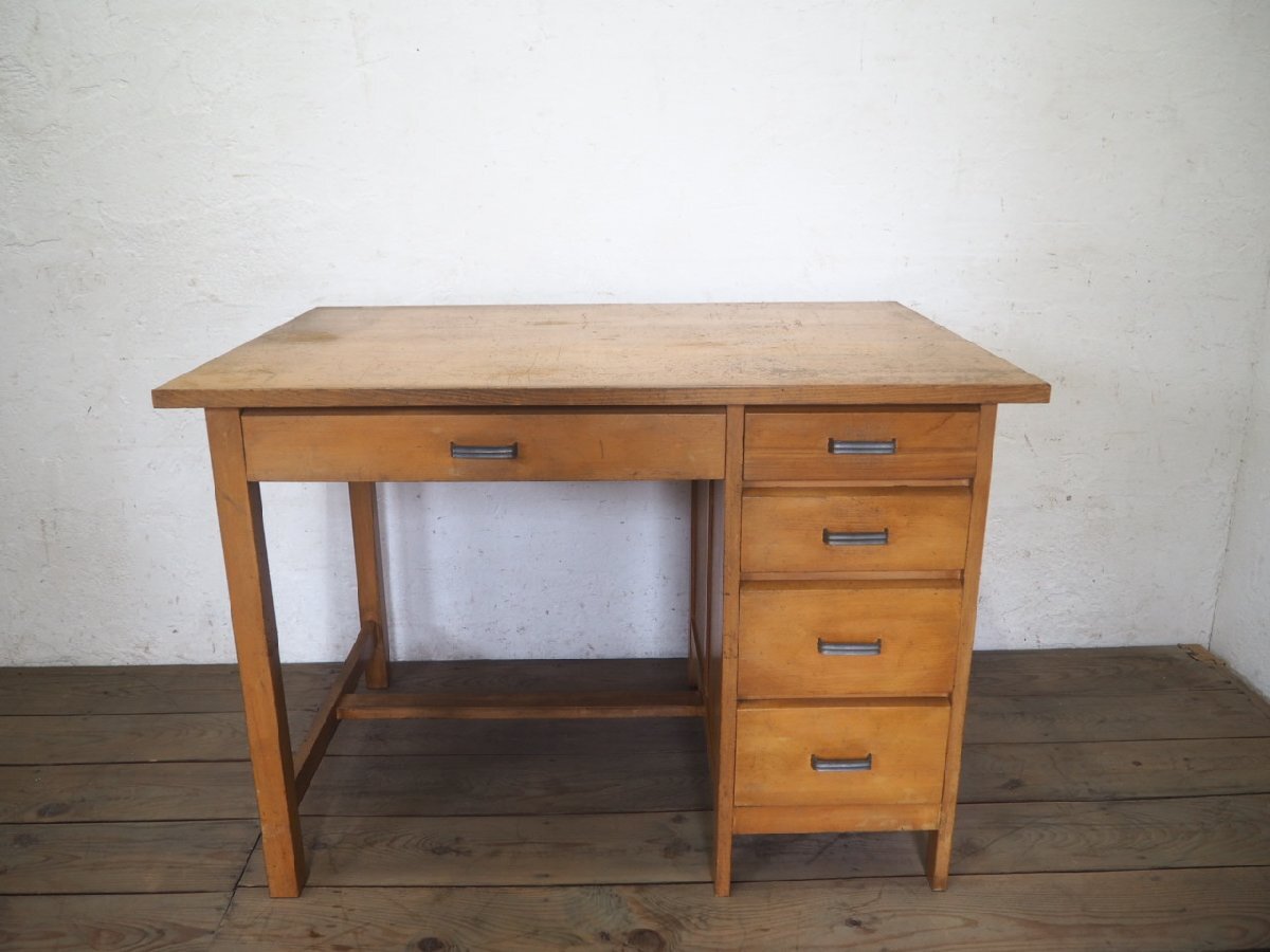 タ荷Q0495◆H74,5cm×W106cm◆ヴィンテージ◆レトロな古い木製片袖机◆テーブル デスク 作業台 学習机 展示台 レトロR(ヤD)松