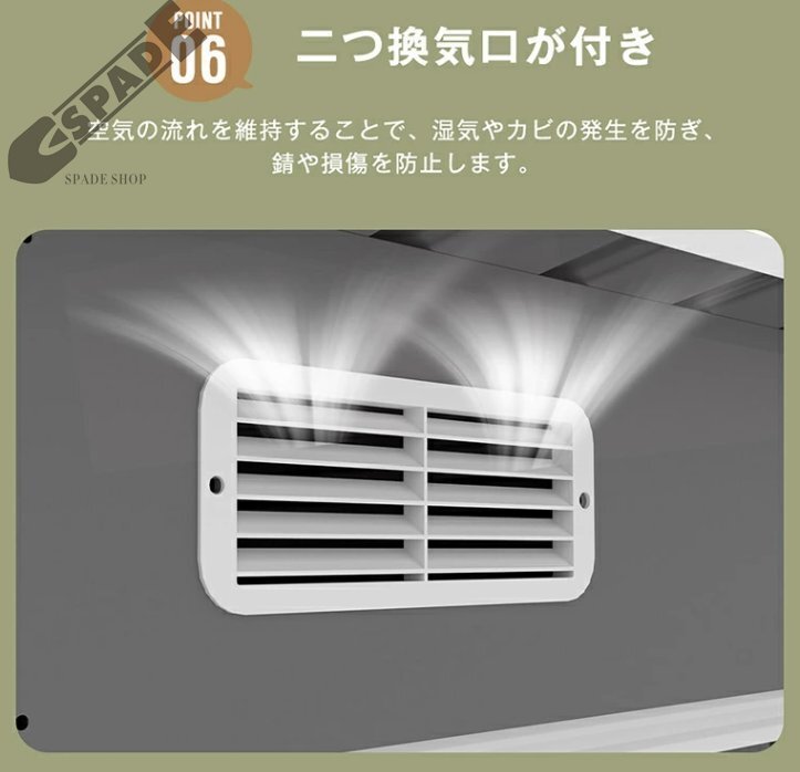 • 【二つ換気口が付き】空気の流れを維持することで、湿気やカビの発生を防ぎ、錆や損傷を防止します。
