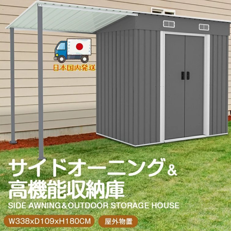 【国内発送】物置 屋外 超大型倉庫 戸外収納庫 防水/耐侯 収納可能 ガーデン/庭/田畑/農場 頑丈 大容量 スチール 引き戸 換気口付き床なし