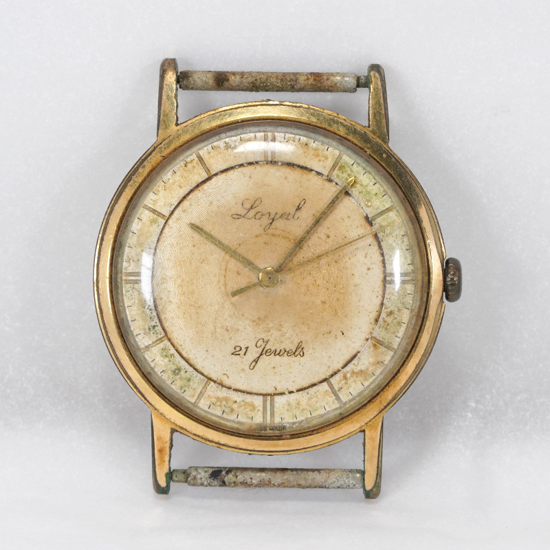 【エニカ】 全体的に傷があり、風防の2時付近に欠けが見られます。 文字盤内の6時と7時付近に緑青があり、またゴミも見られます。 針に若干の腐食がございます。 リューズ操作が若干重たく感じ、また日付の早送りをする際キュルキュルと音がします。 2025年8月に電池交換済の稼働品です。 【ロイヤル】 風防を含む全体的に傷があり、バネ棒を含む全体に錆・緑青・メッキ剥げがあります。 文字盤内に変色・緑青・錆がございます。 針には腐食が見られます。 ケースには欠けている箇所があります。 稼働品です。 | |||