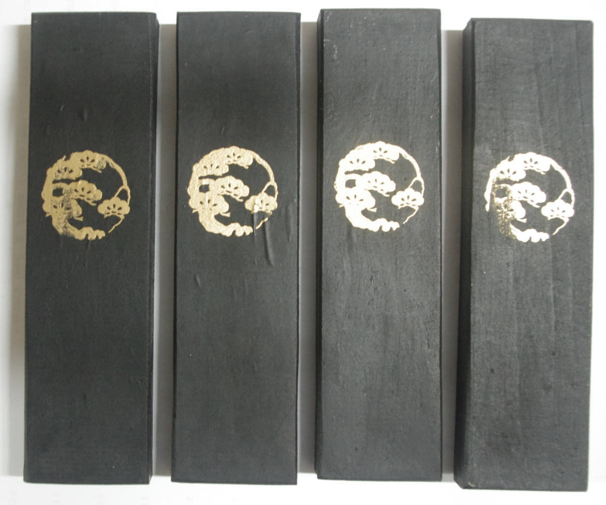 純松煙墨「松葉牡丹」6丁型4本セットの出品です。 大変貴重な大型の松煙です。 特に中~淡墨で実線とにじみの差が顕著に 表現でき、立体感のある墨色です。 濃墨では艶を抑えた純黒です。 15000円の定価が貼ってあります。 サイズ 縦約134mm横33mm厚さ12mm 重さ約100g 土日は休みの為取引連絡、発送が出来ません。 平日のみの対応になります。 全て未使用 桐箱入りです。