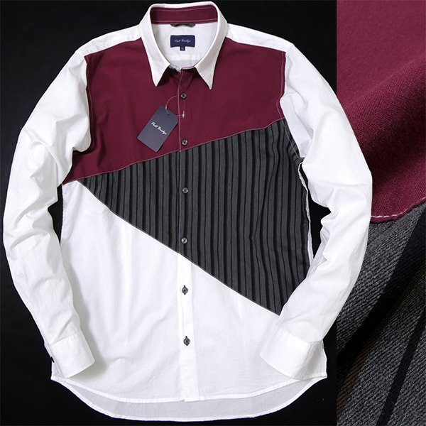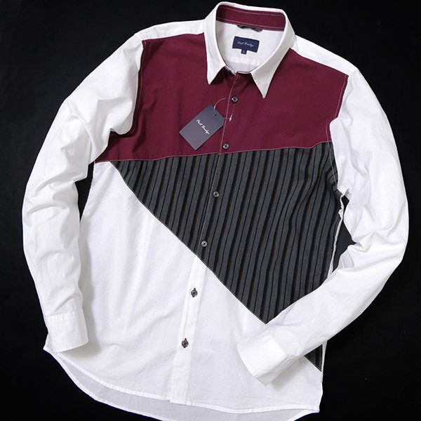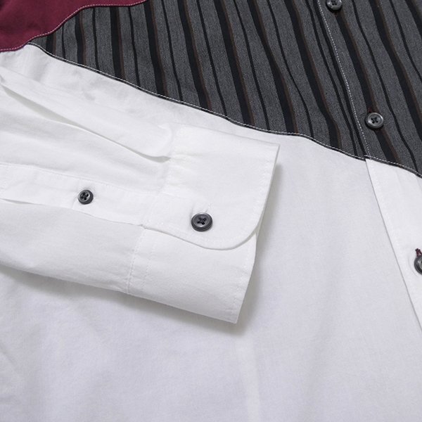 サラッとしたコットンブロードクロスを使用した長袖シャツです。 ロングシーズンで着用ができる生地感で、綿100%ながらナチュラルなストレッチ性があります。 ストライプや切替カラーがアクセントになったクレイジーパターンで、カジュアルシーンにぴったりです。 スッキリとした丈感と衿デザインなので、羽織るようにラフに着こなしてもお洒落に決まるアイテムです。 |