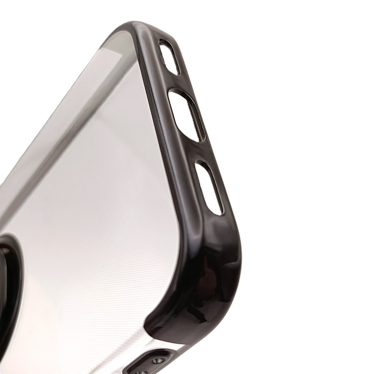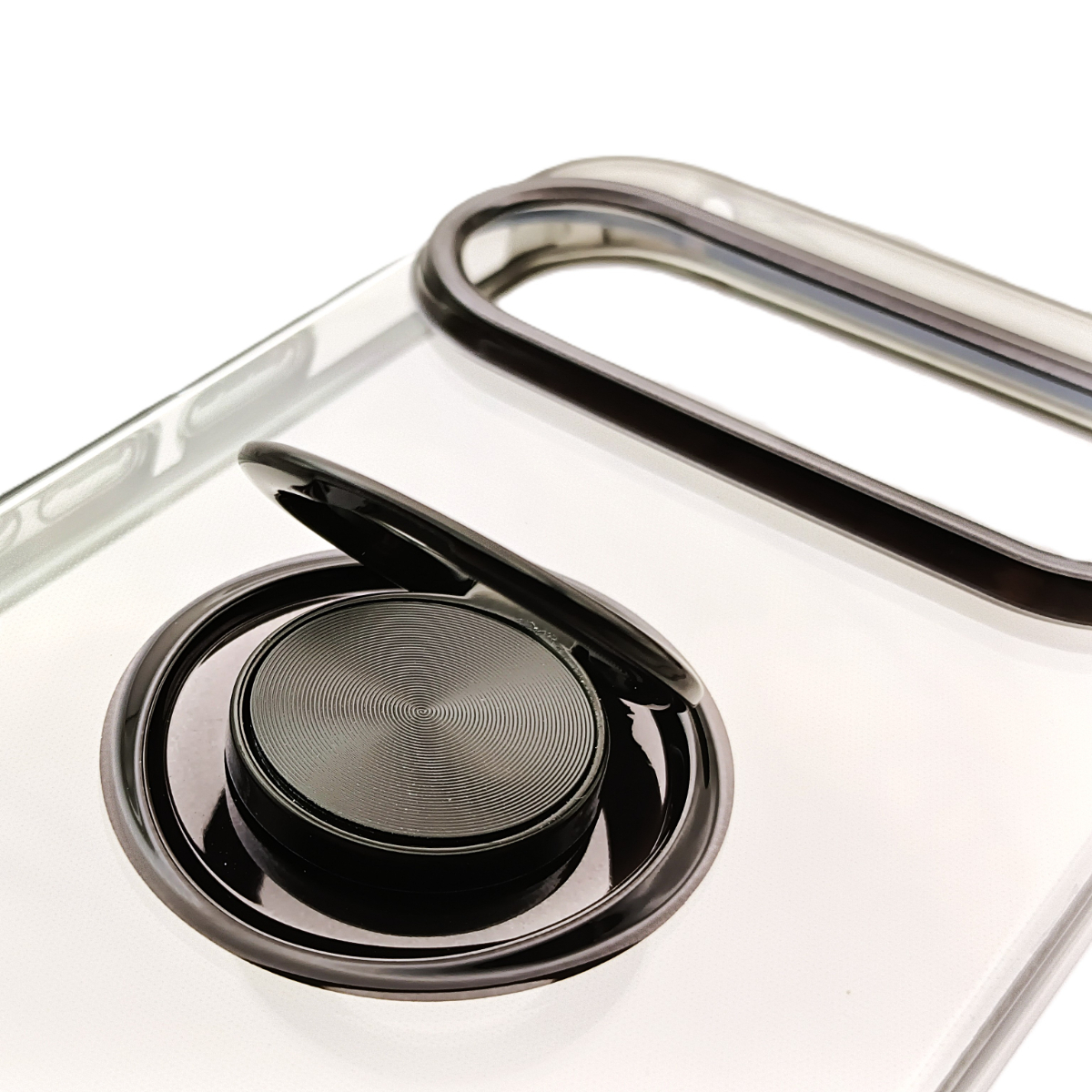 透明感のあるTPU素材に、上品なメッキ加工を施したシンプルかつ高級感のあるスマホケースです。背面には360度回転式のリングスタンドを搭載し、利便性とデザイン性を兼ね備えています。