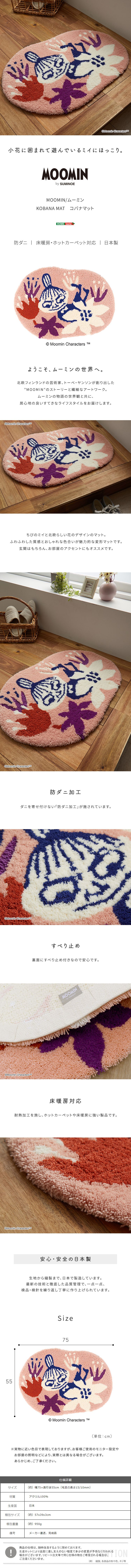 | 小花に囲まれて遊んでいるちびのミイのマット! 裏面には滑り止め加工を施しているのでズレにくく快適です。 ダニを寄せ付けない防ダニ加工でアレル物質の心配が少なく、安全性が高い薬剤なので肌に触れてもにも安全です。 耐熱加工で床暖房の上にも敷くことが出来ます。 |