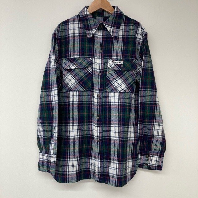 C476 サマス 46 ユーロ古着 イタリア製 アクリル 長袖 チェックシャツ マルチカラー Samas メンズ